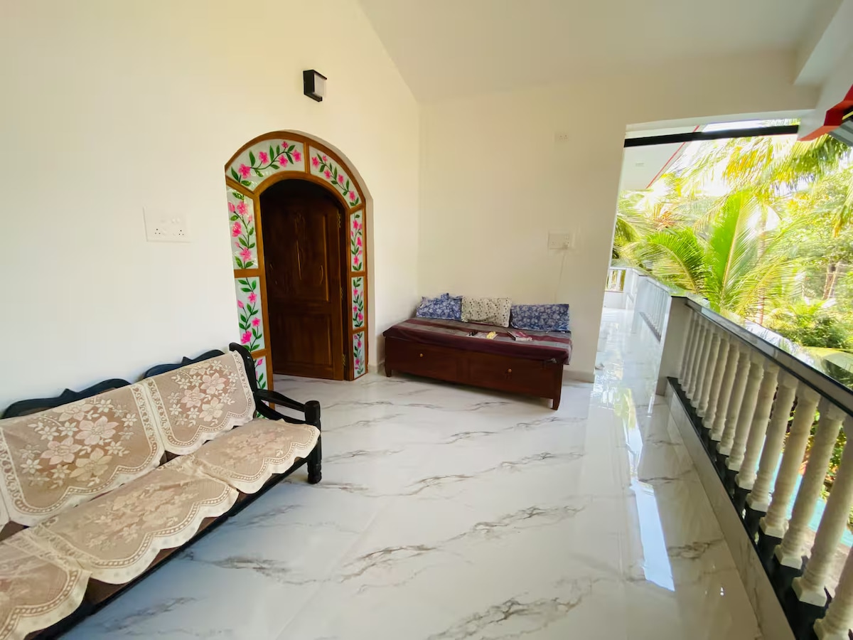 Graži 3BHK vila buvo kruopščiai suprojektuota taip, kad gautų raminantį vandenyno vėją. Iš jo atsiveria vaizdingi vaizdai į plačią Arabijos jūrą, kurią verta pabusti. 3 miegamuosiuose yra vonios kambariai ir terasos, o virtuvė pilnai įrengta. Mėgaukitės raminančia rytine joga arba linksmais pusryčiais plačiame jaukiame kieme. Ši viešnagė buvo sukurta ir pritaikyta ne daugiau kaip 5 asmenų grupei ir yra saugi bei aptverta.