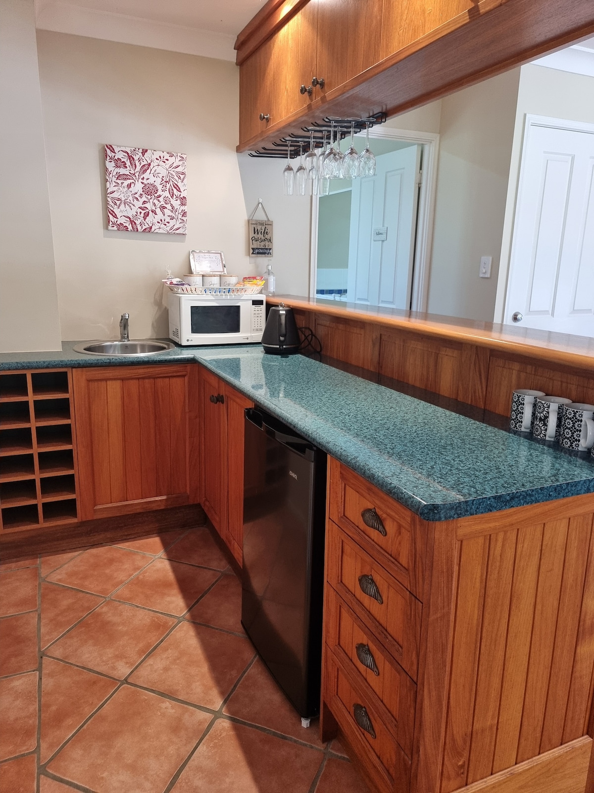 Apsistokite ramioje poilsiavietėje Auksinėje pakrantėje. Mūsų šviesus, erdvus, vieno miegamojo svečių namas yra apatiniame mūsų namų aukšte ir yra visiškai atskiras su atskiru įėjimu ir automobilių stovėjimo vieta. Jame yra vienas didelis miegamasis su dvigule ir viengule lova, privatus vonios kambarys, virtuvėlė, valgomasis ir poilsio kambarys, iš kurio atsiveria vaizdas į baseiną. Mėgaukitės lapuota aplinka būdami Auksinės pakrantės centre. Yra lengvas pusryčių paketas, o netoliese yra daug kavinių ir restoranų.