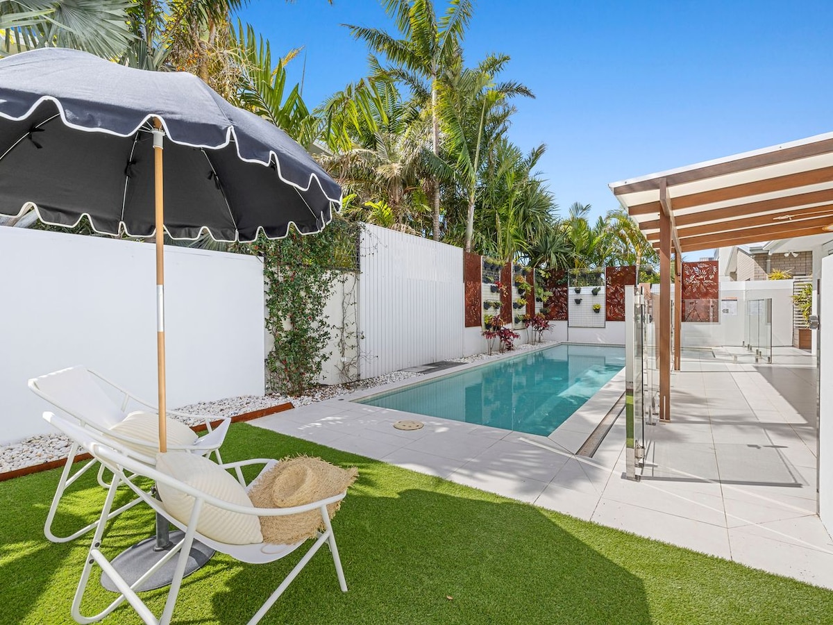 Tai viena iš nedaugelio privačių vilų Mermaid paplūdimio rajone, tai jūsų paplūdimio namai. Šiuose stilinguose privačios vilos namuose galite smagiai praleisti laiką su šeima, draugais ar kolegomis vos už kelių minučių kelio pėsčiomis iki pasaulinio lygio undinės paplūdimio! Jums patiks auksinis smėlis ir galėsite maudytis švariuose, šiltesniuose Auksinės pakrantės vandenyse ištisus metus. Atnaujintos, šviesios gyvenamosios erdvės, atsiveriančios į šiaurę, apvyniokite sodus ir slaptą verandą visiems jūsų pramogų poreikiams. Nemokamas automobilio statymas ne gatvėje!