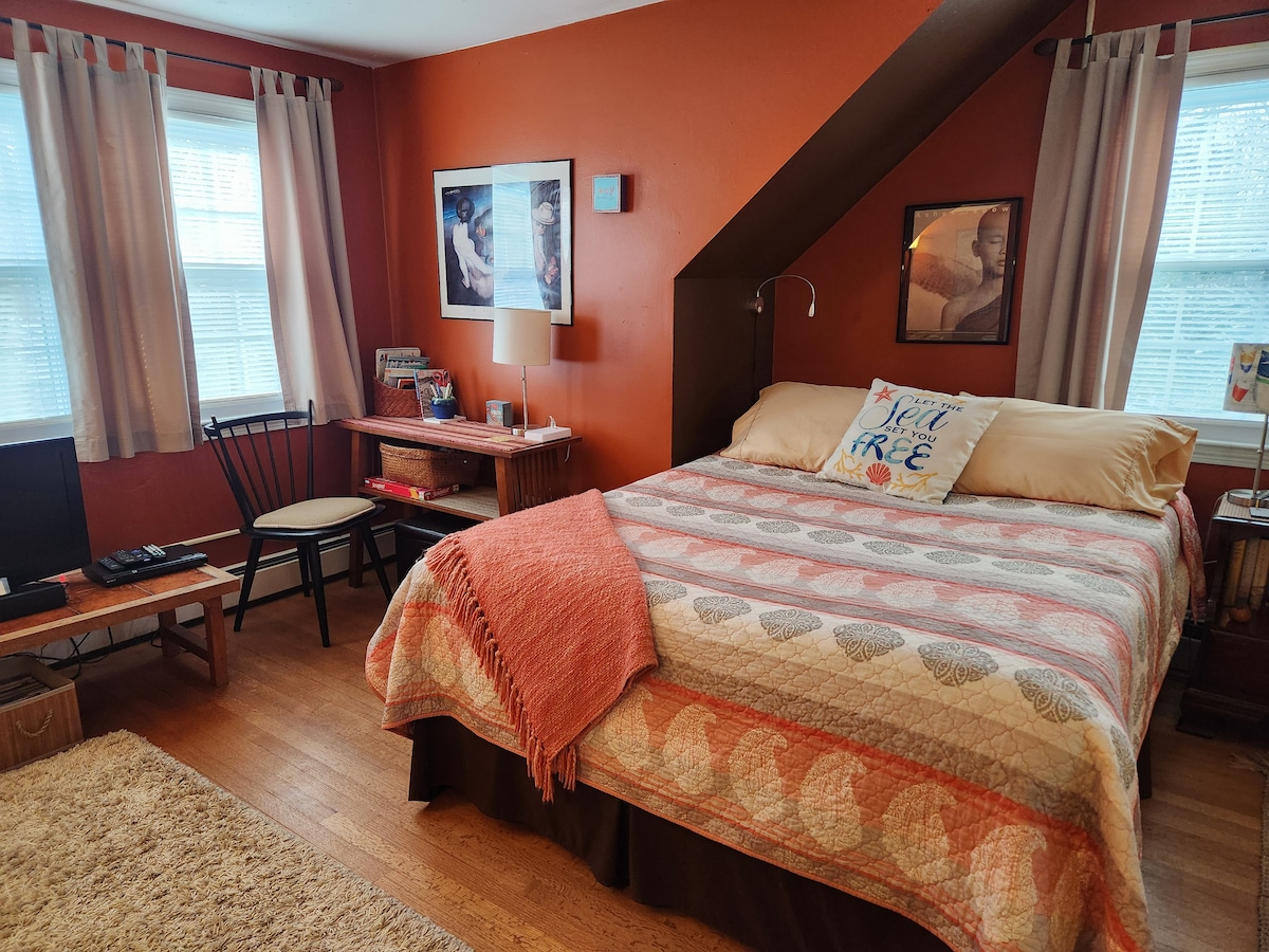Patirkite mūsų gražiai renovuoto 1870 m. sodybos, erdvaus viršutinio būsto Kennebunk atostogų būsto, siūlančio komfortą ir atsipalaidavimą, žavesį vos už 5 minučių kelio pėsčiomis nuo miesto centro! Mėgaukitės lengva prieiga prie vietinių kavinių, restoranų, ūkininkų turgaus ir populiarios Garden Street boulingo alėjos. Idealiai tinka jaukiai, patogiai išvykai. Reikia daugiau erdvės? Peržiūrėkite mūsų profilį, kad galėtumėte užsisakyti viso namo nuomą, puikiai tinkančią ne daugiau kaip 8 svečiams. Leidimas statyti automobilį paplūdimyje Kennebunk paplūdimiuose įskaičiuotas!