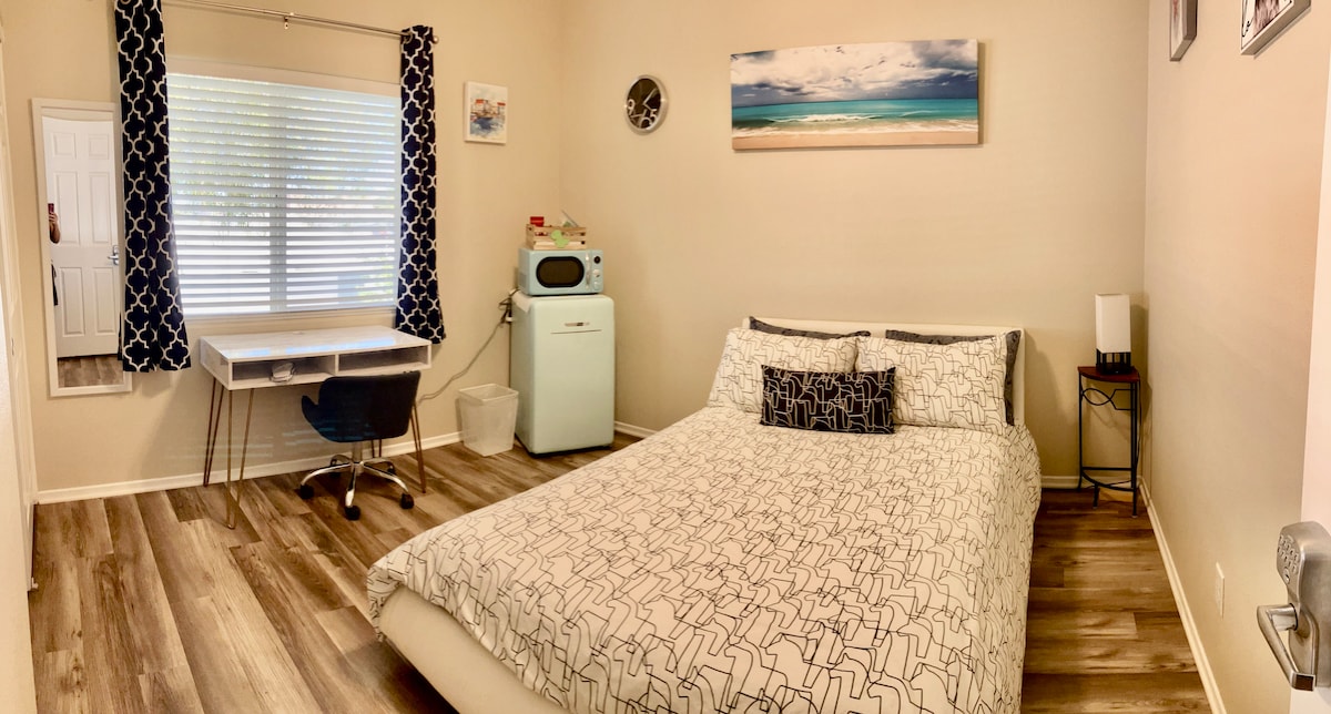 Welcome to our Pink Dream Studio in Spring Valley! Featuring a comfy full-size gel foam mattress, full bathroom, and an extra folding twin bed, it’s ideal for 1–2 guests (or 3 if needed). Peaceful, safe neighborhood surrounded by tons of delicious food options.