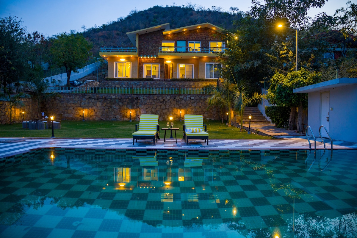 2 BHK unikali vila su vaizdu į slėnį ir baseinu @ Udaipur
