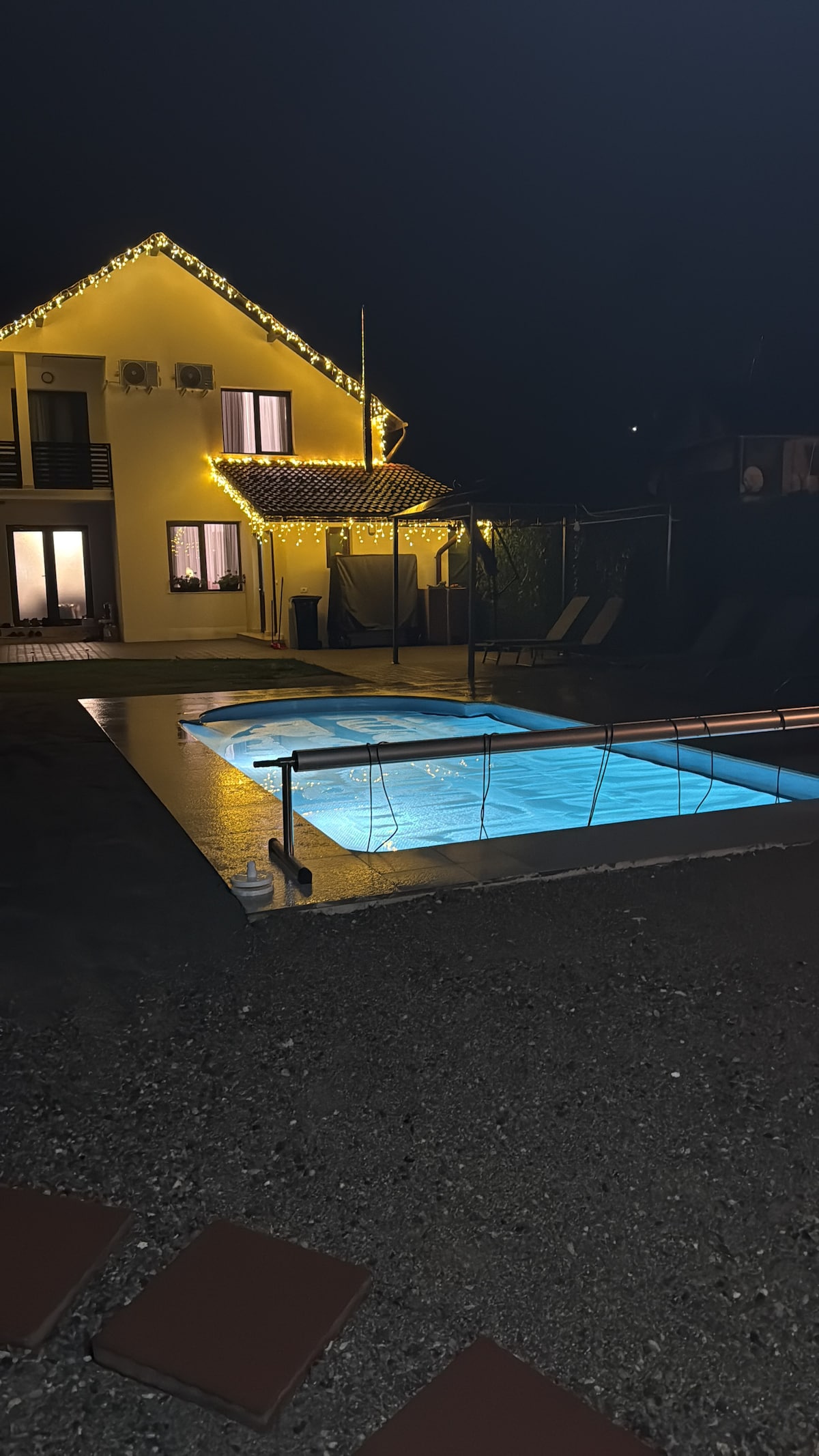 Destinde-te în această locuință unică și primitoare. Cabana este situată într-o zonă liniștită și pitorească, departe de agitația orașului (în schimb, dacă doriți sa dați decibelii la maxim, nu vă va impedica nimic, intrucât nu există vecini sau reclamații). Alături de zona dedicată grătarului, se află și un cuptor pe lemne. Piscina este încălzită pe tot parcursul anului. Pentru mai multe detalii (inclusiv stabilitea pretului final), contact telefonic sau mail.