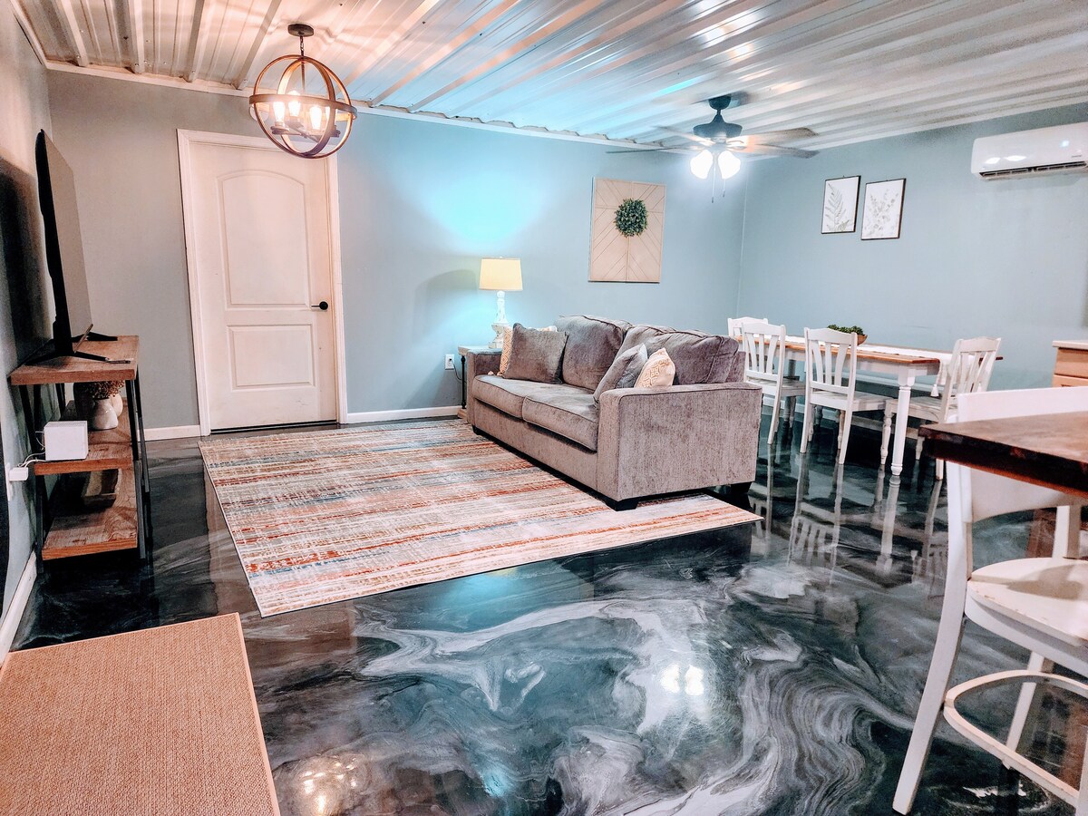 Viskas, ko jums reikia nuostabioje, modernioje erdvėje, esančioje 7 nuošaliuose akruose, su privatumo vartais vos už kelių minučių kelio nuo Ross Clark Circle ir miesto centro, Wi-Fi, išmanioji televizija su YouTube TV prenumerata (daugiau nei 70 kanalų), visiškai naujas šaldytuvas, erdvūs kambariai. Yra skalbyklė ir džiovyklė. Priimame augintinius kiekvienu konkrečiu atveju ir svečiams atvykus imame vienkartinį 10 $ mokestį už augintinį. Taip pat siūlome 2 lygio elektromobilio įkrovimą (40 A) už fiksuotą 10 $ mokestį.