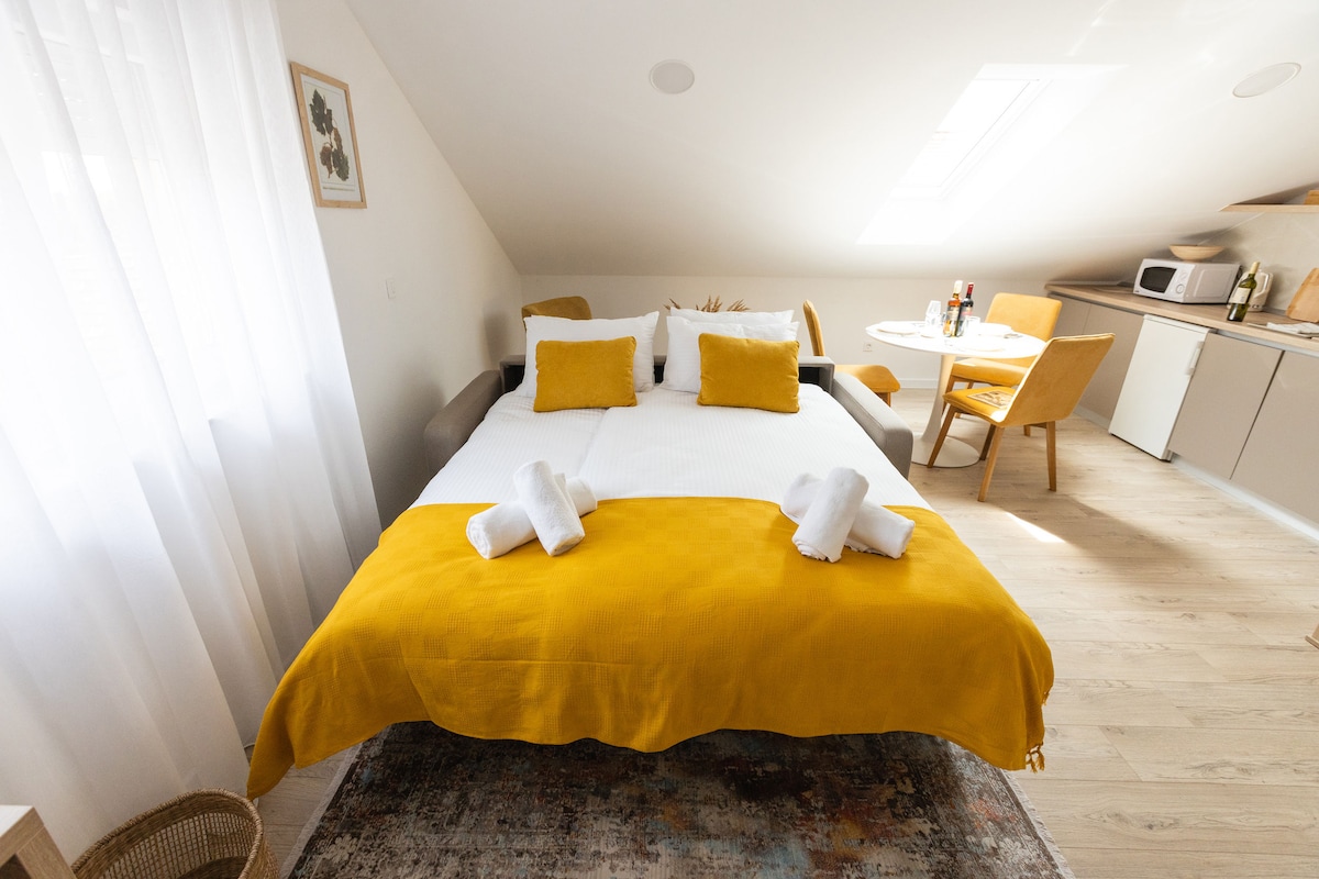 Kambariuose ir bute Perak Kutjevo centre yra patogūs ir modernūs kambariai bei butas. Kiekvienas būstas buvo apgalvotai suprojektuotas taip, kad viešnagė būtų patogi. Kambariuose yra patogios lovos, rašomasis stalas, televizorius, nemokamas internetas, Netflix turinys ir privatus vonios kambarys. Bute yra pilnai įrengta virtuvė ir svetainės zona. Svečiai gali naudotis nemokama vietoje esančia automobilių stovėjimo aikštele. Jūsų šeimininkai visada pasiekiami.
