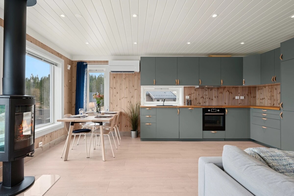 Atraskite rafinuotą kalnų poilsiavietę, esančią vos už valandos kelio nuo Oslo ir mažiau nei valandos kelio nuo Gardermoen. Šioje elegantiškoje 2019 m. trobelėje dera minimalistinė šiaurietiška elegancija su šiltais patogumais - židiniu, privačia sauna, grindiniu šildymu ir turtinga terasa. Su 4 miegamaisiais ir universaliu loftu puikiai tinka šeimoms ar draugams. Išeikite į lauką iki daugiau nei 220 km nepriekaištingų slidinėjimo takų, kurie virsta vaizdingais vasaros takais. Prabanga atitinka ramybę - iš anksto apibrėžta.