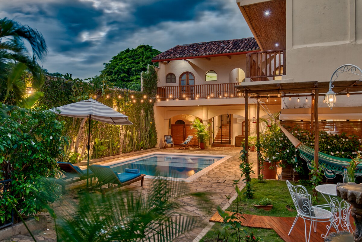 Apsistokite viename iš mūsų erdvių ir elegantiškų apartamentų, kad nepamirštumėte viešnagės Granadoje. Galite rinktis iš Oro Suite, Masaya Volcano arba Mombacho Volcano (esančių viršutiniame aukšte su vaizdu į katedrą). Visuose yra 1 karališko dydžio lova, oro kondicionierius, privatus vonios kambarys, televizorius su programėlėmis, Wi-Fi ir pusryčiai. Atsipalaiduokite naudodamiesi baseinu, sodu ir visais mūsų patogumais.