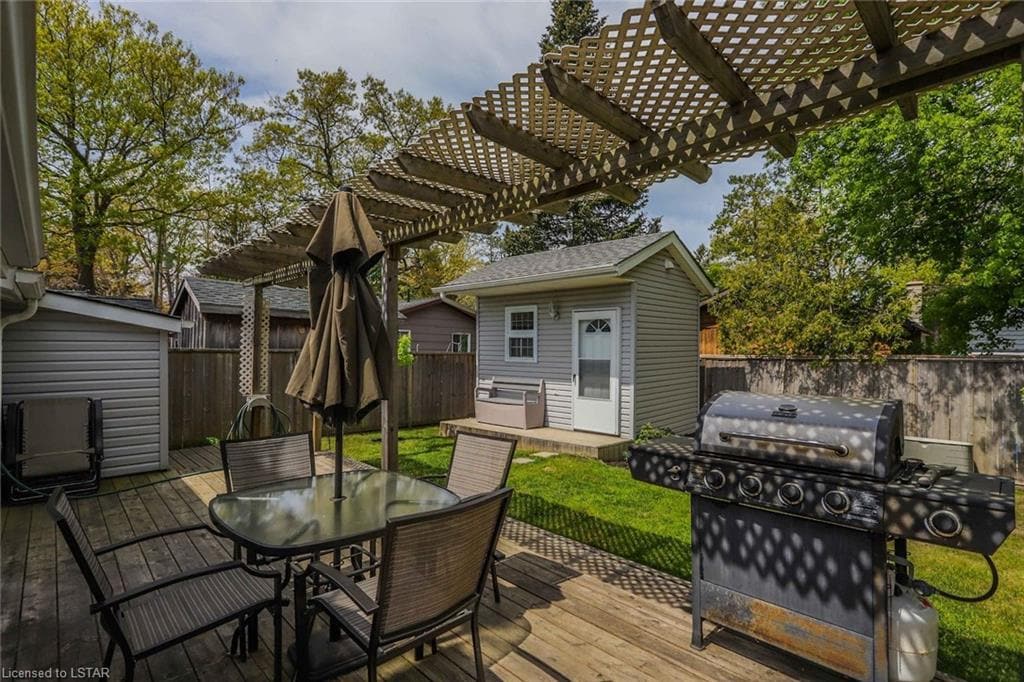 Labai mielas kotedžas Grand Bend kaime. Trumpas pasivaikščiojimas po visus sparčiai augančius pagrindinės gatvės patogumus ir 5 minutės pėsčiomis iki garsiojo „Grand Bend“ mėlynosios vėliavos paplūdimio. Jame yra 1 lova, 1 vonia, virtuvė ir svetainė pagrindiniame vienete ir atskiras 1 miegamojo dviaukštė lova (dviaukštės lovos) su atskiru vonios kambariu. Virtuvė veikia su pilnu šaldytuvu, virykle, mikrobangų krosnele ir skrudintuvu, bet nėra orkaitės. Taip pat yra propano kepsninė. Svečiai turi atsivežti patalynę ir vonios rankšluosčius.