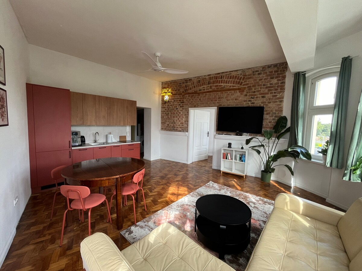 Kviečiame išsinuomoti išskirtinį 100 m2 butą su terasa ir išskirtiniu miesto panoramos vaizdu, įsikūrusį gražiame, restauruotame daugiabutyje pačiame Vroclavo centre. Bute pasirūpinta kiekviena detale, miegamojo langai į kiemą užtikrina ramybę ir tylą, todėl svečiai gali atsipalaiduoti ir mėgautis akimirkomis, praleistomis gražiame Vroclave