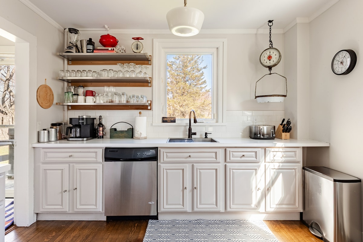 „Arthur's Vineyard“ – tai 1905 m. sodyba su šiuolaikiniais akcentais, jaukus 3 miegamųjų ir 2 vonių namas, nuo kurio pėsčiomis galima pasiekti Grinporto kaimo paplūdimius, prieplauką, restoranus ir parduotuves. Atviro plano svetainė, gaivus interjeras ir didelis kraštovaizdžio elementų turintis kiemas, kuriame galėsite praleisti ramias vasaros dienas ir naktis su šeima ir draugais, įskaitant keturkojus augintinius. Pasivaikščiokite iki traukinių stoties / mikroautobuso stotelės arba trumpai pavažiuokite iki North Fork vyno daryklų ir ūkių prekybos stendų. Naujausi atnaujinimai: centrinis šildymas / oro kondicionierius ir nauji vonios kambariai.