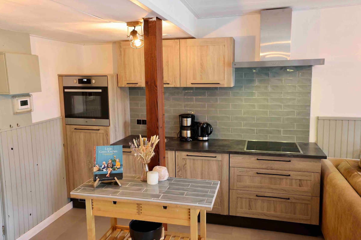 Mūsų nakvynės su pusryčiais vietoje yra visi modernūs patogumai, pvz., moderni virtuvė, „Philips“ atspalvių apšvietimas, išmanusis televizorius ir „Quooker“. Jaukioje verandoje yra prabangi sūkurinė vonia ir malkomis kūrenama viryklė. B&B su dideliu privačiu sodu ir netrukdomais vaizdais yra visiškai apsaugota nuo sodybos tvora ir prieinama tik jums kaip svečiui. Iš gretimoje terasoje esančios suomiškos statinės pirties galite pažvelgti į vaizdingas miesto pievas. Skanūs pusryčiai pagal jūsų skonį yra neprivalomi.