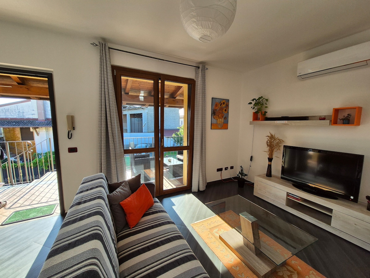 Graži kaimo vila Bereguardo, už maždaug už 1 km nuo kaimo centro, žalioje ir ramioje vietoje, Lombardo del Ticino parke. Svečiai gali naudotis visu butu viršutiniame vilos aukšte su atskiru įėjimu. Tinkama aplinka šeimoms ir draugams, kurioje gali apsistoti iki 5 žmonių. Lauke: baseinas, sodas ir kepsninė. 3 dviračiai yra nemokami. Savininkai turi du šunis savo privačiame sode: Creed ir Eja.