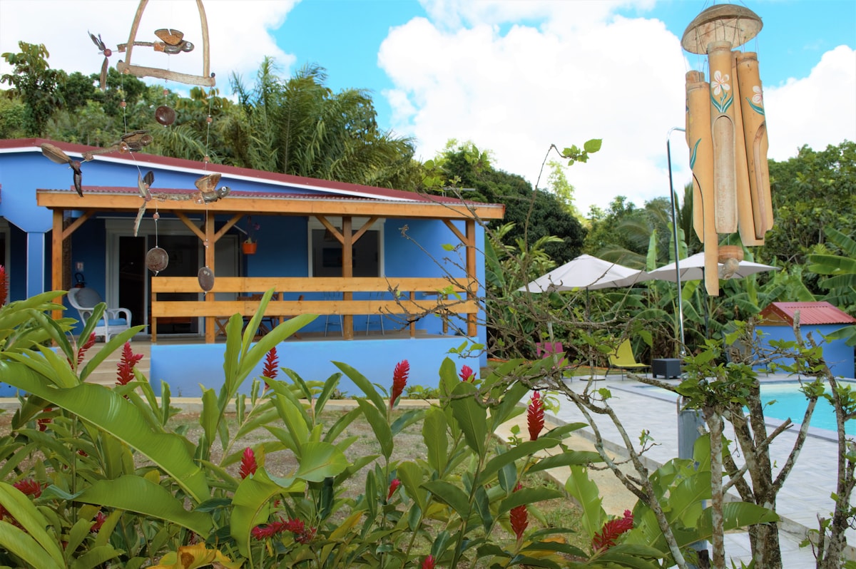 Kreolinė vila 4 asmenims Sainte-Rose, šiaurinėje Basse-Terre, gražaus miškingo parko širdyje: 2 kambariai su oro kondicionieriais su tinklu nuo uodų su privačiu vonios kambariu, amerikietiška virtuvė, valgomasis, didelė terasa ant privataus baseino ir sodo, aperityvas/šašlykinė. Jūs galėsite mėgautis stebuklinga vieta hamake, pakabintu prie baseino arba gėrimu aplink baseiną... viskas prisideda prie atsipalaidavimo ir tinginystės... Visi svečiai laukiami...