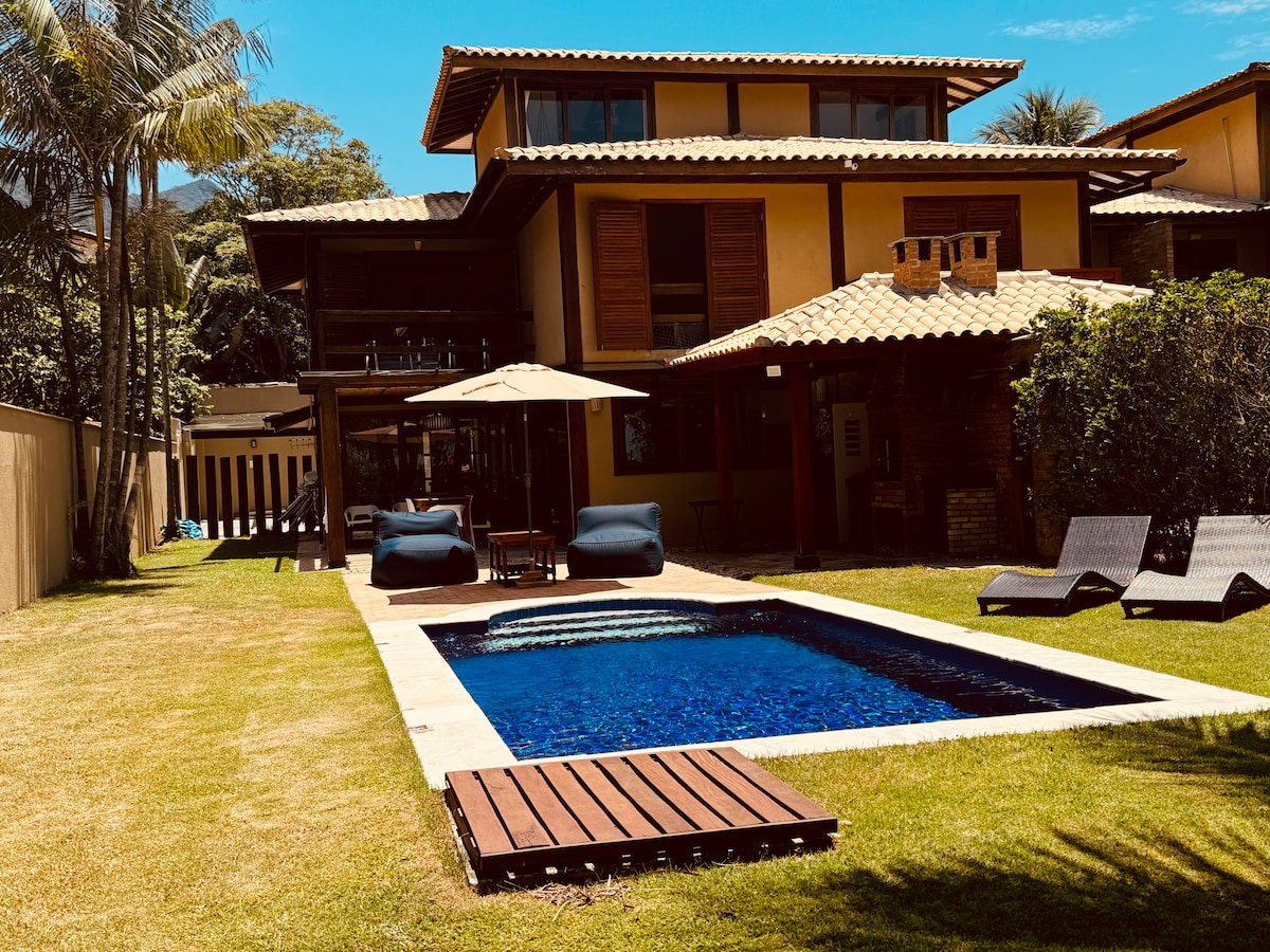Namas su vaizdu į jūrą, baseinu, kepsnine ir baseino stalu. Jame yra hamakai poilsiui, oro kondicionierius visuose kambariuose su 100% medvilnine patalyne ir rankšluosčiais bei 100 megabaitų Wi-Fi. Jame yra pilna virtuvė tiems, kurie mėgsta gaminti. Netoli kelių paplūdimių ir krioklių taip pat yra prekybos centras ir vaistinė. Ir tai yra Ilhabeloje, sodrios gamtos nacionaliniame parke su daugybe restoranų, renginių ir koncertų ištisus metus.