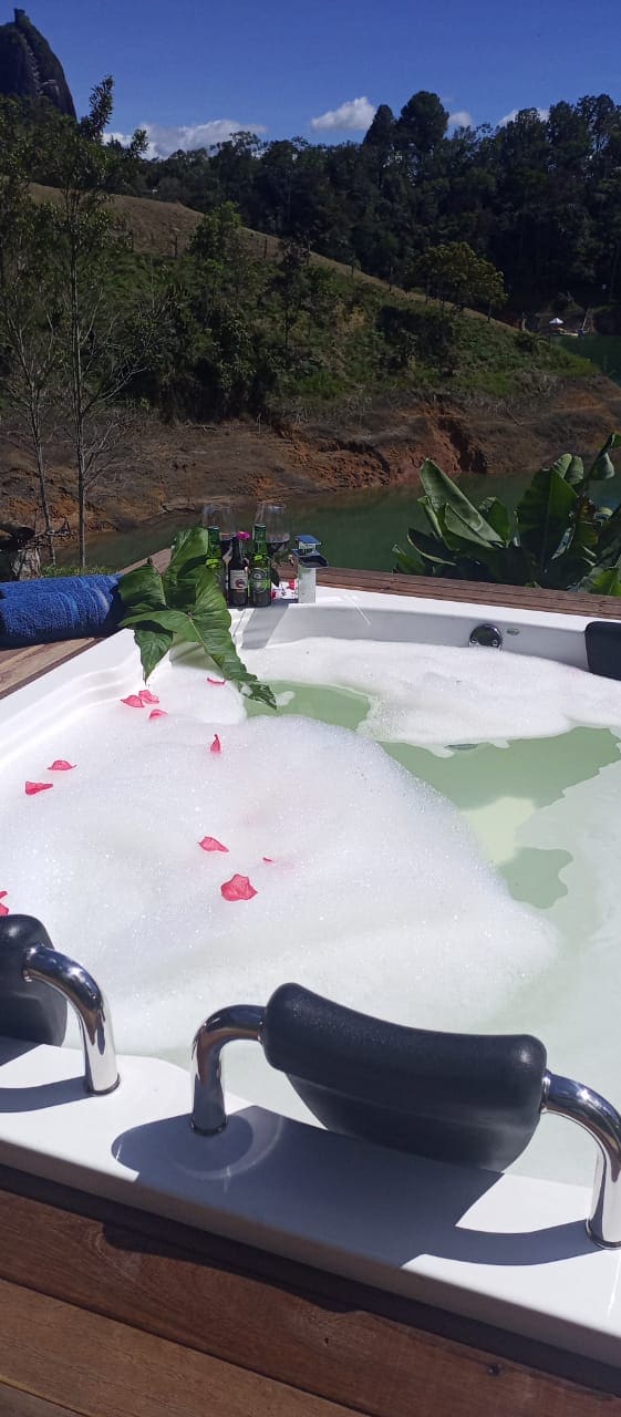 Patirkite išskirtinę patirtį priešais Guatapé užtvanką. Pabuskite su didingu Piedra del Peñol vaizdu ir mėgaukitės aplinkos ramybe: sūkurine vonia 10 žmonių, plūduriuojantis kioskas, kepsninė, baras ir žaidimų aikštelė vaikams. Šiame būste yra 5 kambariai su privačiais vonios kambariais, bendra svetainė ir atvira virtuvė, čia gali apsistoti iki 15 žmonių. Tiesioginis priėjimas prie užtvankos ir sodų, idealiai tinkantis atsijungti nuo kasdienybės.