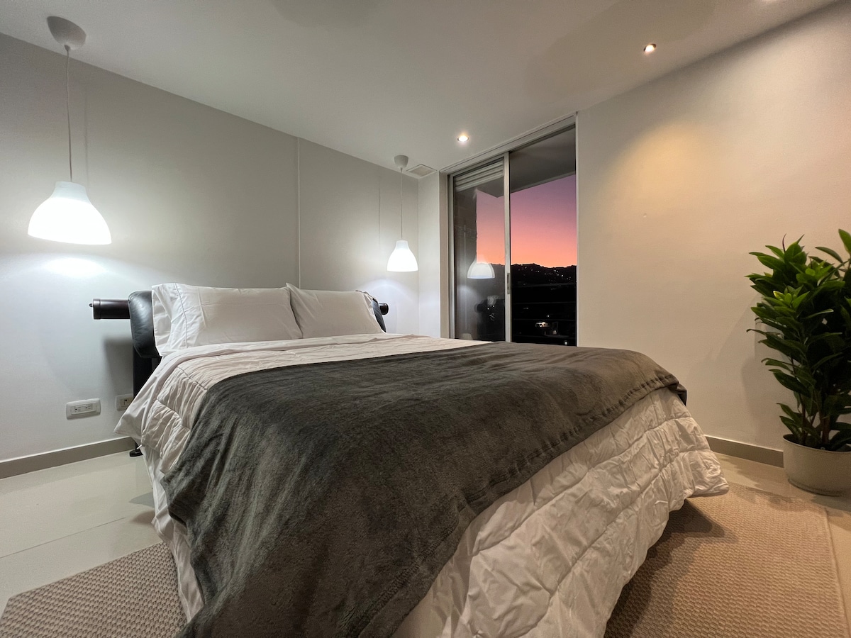 300 Mbps FO Wi-Fi. Nemokamas svečias. Ypatinga vieta netoli visko, todėl lengva suplanuoti apsilankymą. Pilnai įrengtas liukso numeris su oro kondicionieriumi, virtuvėlė (ledo aparatas, kavos aparatas, sumuštinių viryklė, maišytuvas, mini šaldytuvas, elektrinė viryklė, mikrobangų krosnelė), darbo stotis su monitoriumi, PS4 (COD, Madden, NFS), poilsio zona/darbo zona, sporto salė, skalbykla ir nuostabus vaizdas. Įsikūręs vienoje iš geriausių Medeljino vietų, netoli visų lankytinų vietų (Santa Fe Mall, EAFIT, Metro, Parque Lleras, Provenza).