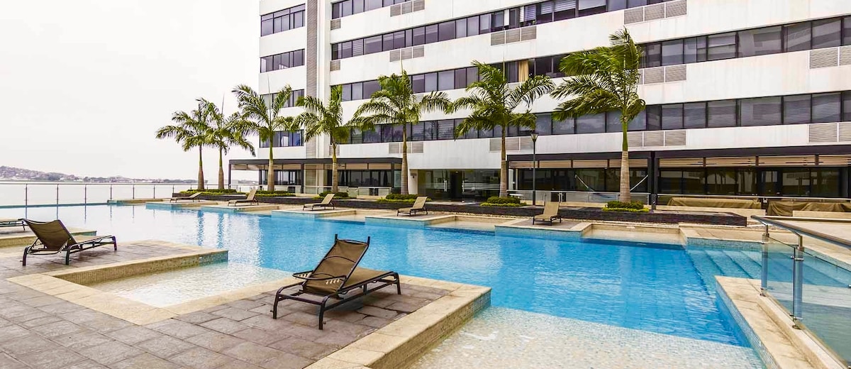 🏡 EXCLUSIVE APT IN PUERTO SANTA ANA | TOURISM & HOME OFFICE | WIFI (1GB) + PARKING | BELLINI 3 ✨ Feel at home 👤 7 Guests · 🛏️ 2 Bedrooms · 🛌 3 Beds +🛋️Sofa bed 🚗 Parking 🏊 Pool, gym & jacuzzi 📍 Next to the Guayas River, near Malecón 2000 and Las Peñas 📶 Wi-Fi (1 GB) · 📺 Netflix 🧺 Hair dryer, iron & board, washer/dryer and fully equipped kitchen ☕ Courtesy: water, coffee, tea, salt, sugar and personal hygiene items (subject to availability) ✨ Ideal for relaxing or working