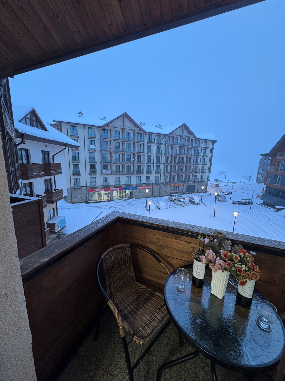 Butas su jaukiu balkonu geriausioje įmanomoje vietoje Iš jaukaus balkono atsiveria fantastiškas vaizdas. Namas stovi tiesiai ant slidinėjimo trasų, labai arti pirmojo keltuvo, slidinėjimo takai yra už 30 m (vos už vienos minutės kelio pėsčiomis) ir šalia viešbučio „Gudauri Marco Polo“. Atstumas nuo buto iki restoranų, didelio turgaus, policijos biuro, autobusų stoties, taksi yra pėsčiomis (apie 30-50 m.). Pirmame kvartalo aukšte šalia apsaugos kambario yra slidinėjimo nuoma ir maisto turgus. Sveiki atvykę:)