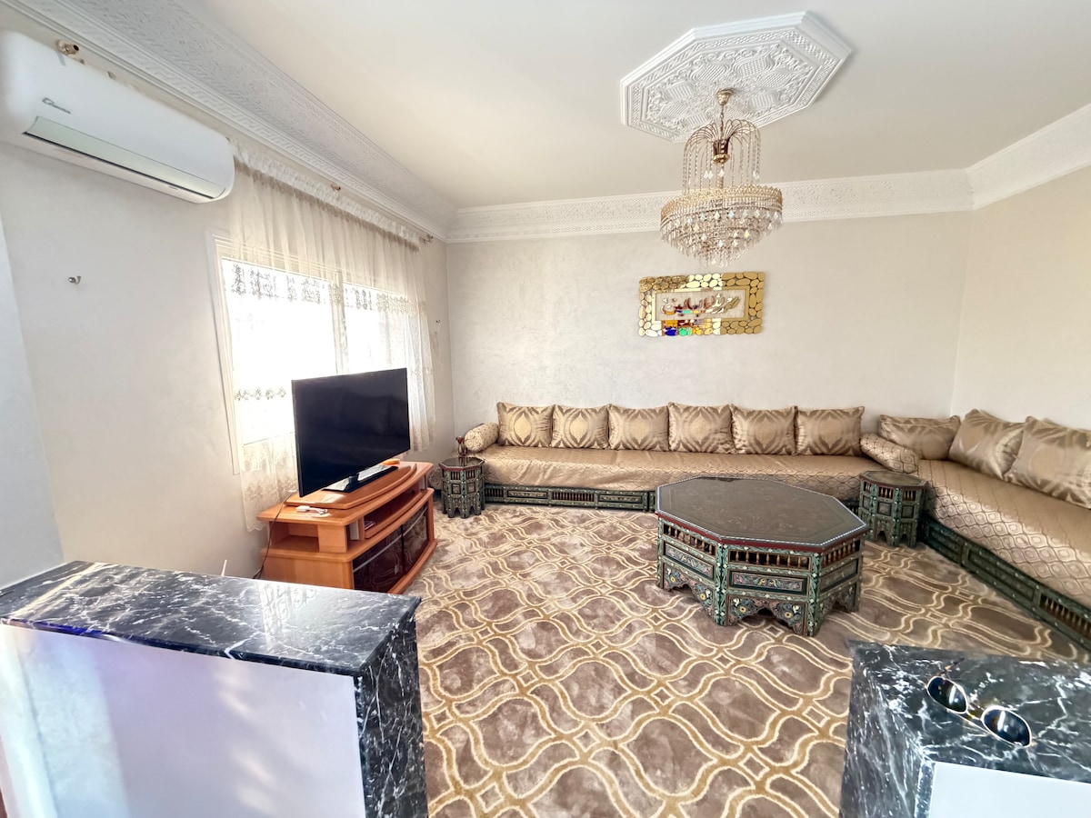 Erdvus, šviesus ir patogus butas ramioje ir saugioje paplūdimio rezidencijoje Aglou. 95 km į pietus nuo Agadiro ir 15 km nuo Tiznit. Iš didelės terasos atsiveria vaizdai į vandenyną ir kalnus. Gyvenamojoje vietoje yra 2 lauko baseinai, įskaitant 1 vaikams ir nemokamą automobilių stovėjimo aikštelę. Įėjimas į paplūdimį iš gyvenamosios vietos. Viršutiniame aukšte esančiame 183 m2 bute yra 3 miegamieji, 2 vonios kambariai, persirengimo kambarys, pilnai įrengta virtuvė, svetainė ir valgomasis, Wi-Fi.