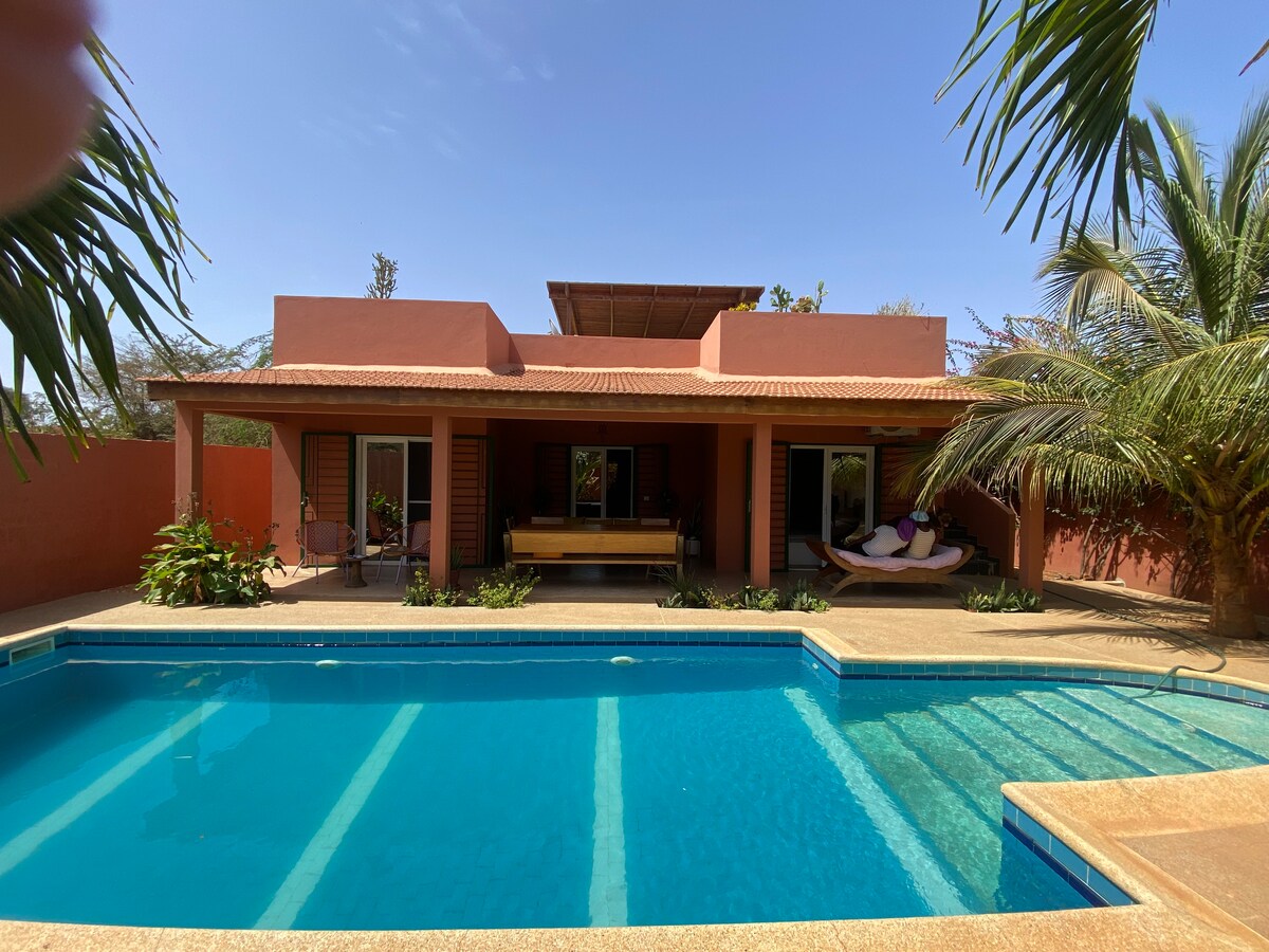 Namas su baseinu ir sūkurine vonia 60 m nuo paplūdimio ir 2 km nuo marių. Puikiai tinka pasivažinėjimams dviračiais, pasivaikščiojimams paplūdimiu ar vakarėliams prie marių. Idealus namas su vaikais, ramiai pailsėti atokiau nuo šurmulio ir tuo pačiu metu 10 minučių nuo Somone ir 50 minučių nuo Dakaro. Gamtos mylėtojai gali pasinerti į vešlią mangrovių augmeniją, o romantiškiausi gali kontempliuoti gražius saulėlydžius paplūdimyje.