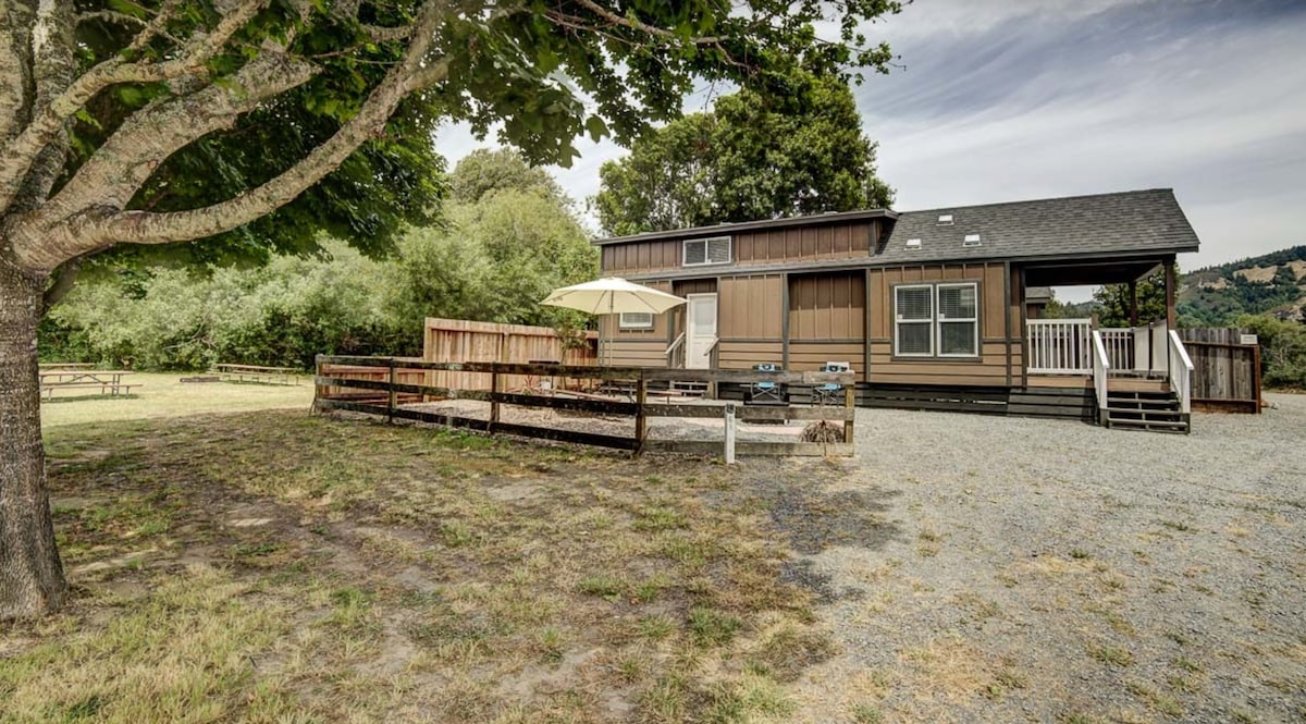 Rascal's Flat is a luxurious hillside retreat w/ hot tub in the heart of the Russian River Valley. There is a cozy 900 sq-ft, 1-bedroom, 1.5 bath cottage with a detached extra bedroom just up the hill. The cottage includes all modern amenities you could want for a comfortable stay. Outside beneath the towering Redwoods, you’ll find multiple outdoor spaces for dining, entertainment, exercise & relaxation. Experience Russian River living at its best!