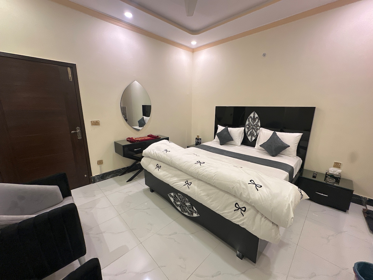 Stay comfortably in a prime Lahore location with cafés and shops just 10 minutes away. Enjoy Smart TV, hot water baths, breakfast in bed, and wash & pressing. Double bed sleeps 3 with an added mattress. Menu items will be charged accordingly. Safe, clean, and backed by 21+ years of hosting experience. House Rule: -Govt issued ID will be required for check in. -Only married couples with a valid marriage certificate may stay together.