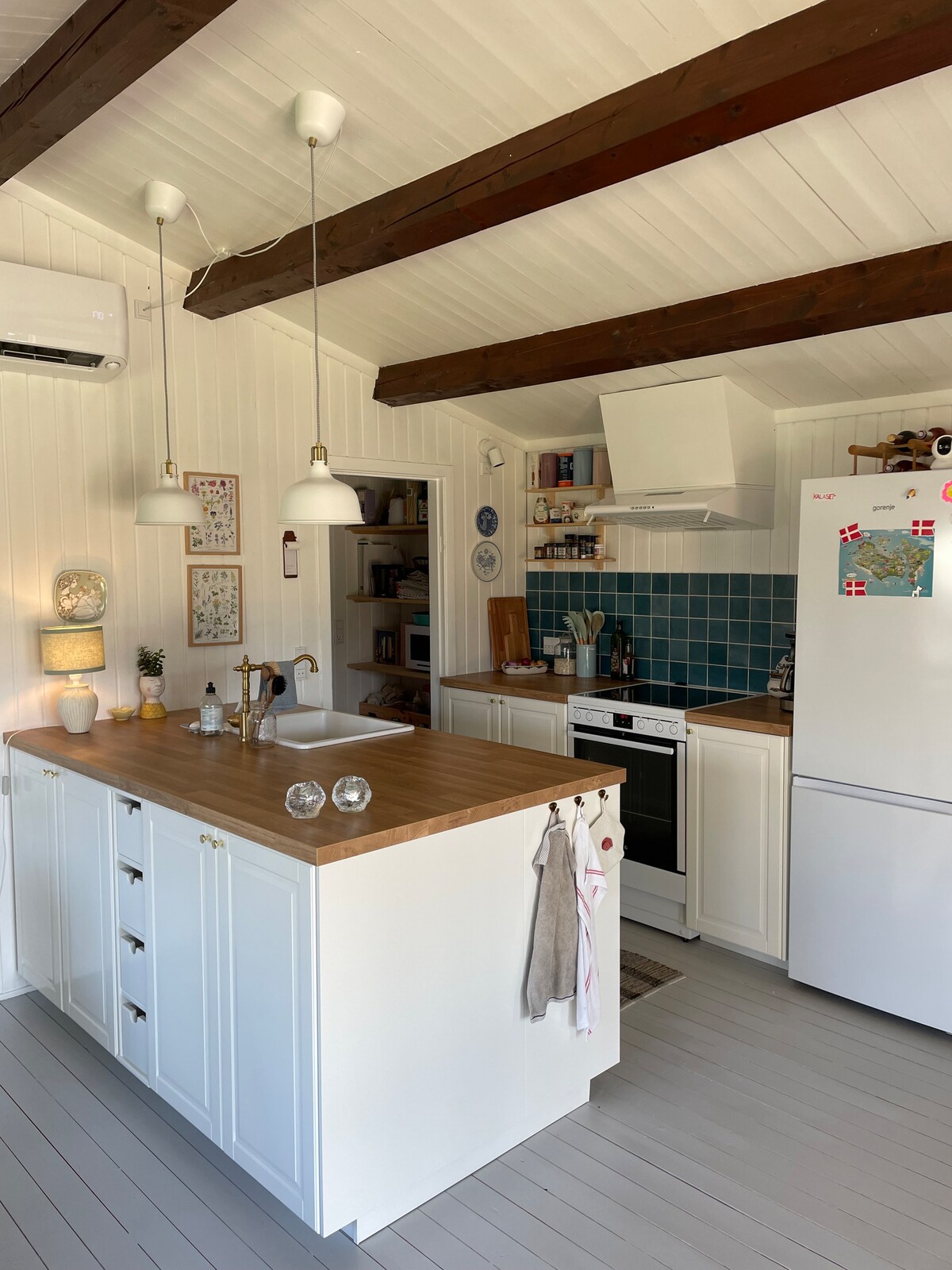 Žavingas mažas, bet funkcionalus 1948 m. vasarnamis jaukioje vietoje su keliomis terasomis. Puiki vieta. 2 minutės nuo vieno geriausių Danijos maudymosi paplūdimių, daug gamtos, dviračių ir žygių galimybių. Namas čia atnaujintas 2020-2021 m. Jauki svetainė su valgomuoju ir atvira virtuve, originali, su 2 dujiniais degikliais ir šaldytuvu. Maža miegamojo dvigulė lova. Priedas su tualetu ir kriaukle, puikus lauko dušas su karštu ir šaltu vandeniu. Priede yra miegamoji vieta.