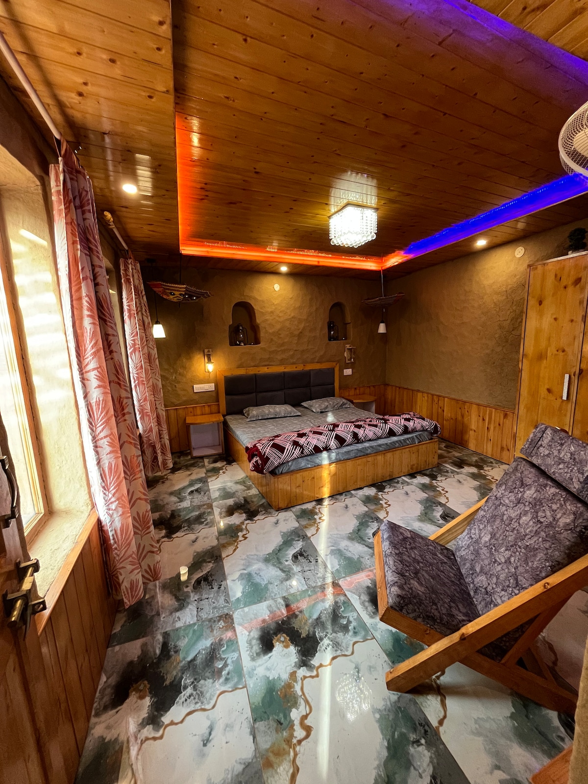 This cozy stay at Jaadooghar Madcap offers 2 charming mud houses, perfect for comfort and nature. Set amidst lush fields with stunning valley views, each room comes with an ensuite washroom and modern amenities Enjoy -Fresh meals -Cozy mud houses with work desk, comfy bed, blankets, heater, power backup, and hot water -Garden with peaceful surroundings and beautiful views -Complete privacy -Village walk, pottery workshops, and outdoor activities -Riverside picnic, adventure sports