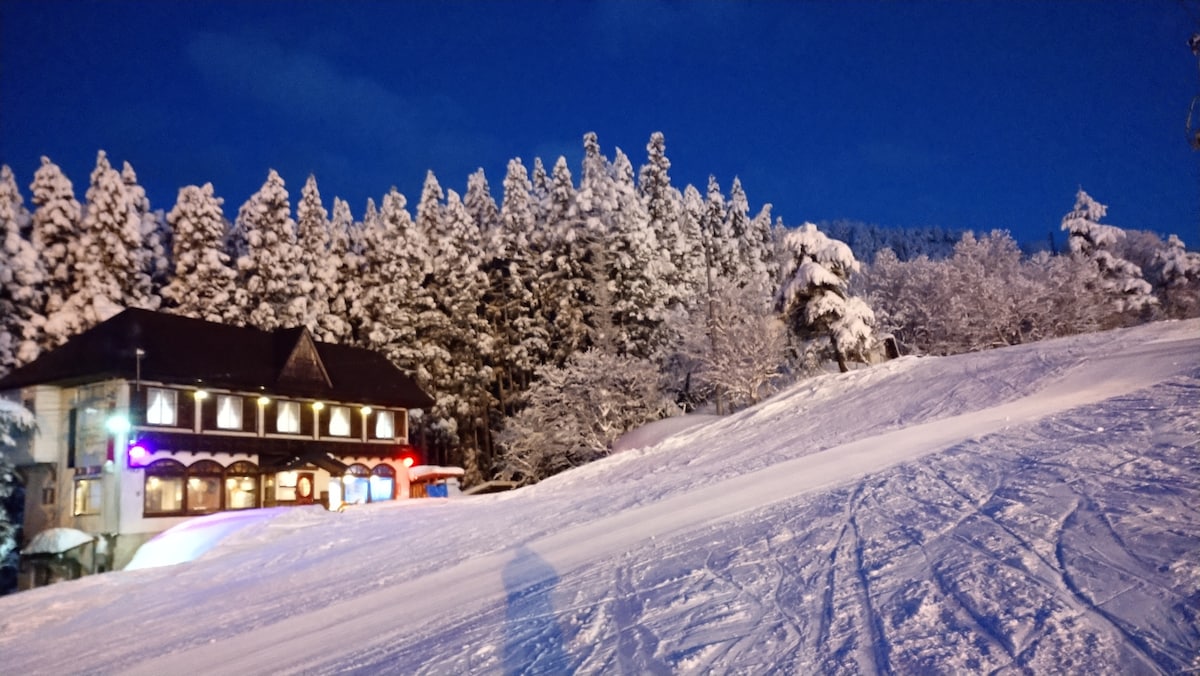Winter - Snow Season: ★ The lodge is located at 620m within the ski resort on Mt. Kosha. ★ Direct access to the slopes of "Romance no Kamisama" Ski Resort! ★ The accommodation fee is for one twin-bed room for up to 2 guests. ★ For 3 guests per room, an additional charge applies. ★ Additional guests will be provided with futons instead of beds. ★ Free parking is available. Spring/Summer/Fall - Green Season: ★ Auto-camping and BBQ sites are available.