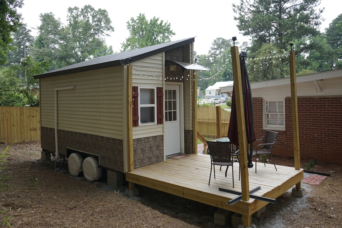 Patirkite naują pamišimą ... mažame name!Namas su naujausiomis technologijomis ir moderniu sodybos dekoru bei 240 kvadratinių pėdų namas yra už 2 mylių nuo vandens centro ir 4 parkų, įskaitant Stone Mountain. Namuose miega 4 žmonės, o 2 dvigulės lovos, įskaitant loftą, virtuvėlę, pilnai įrengtą vonios kambarį ir valgomojo erdvę. Tai jūsų namai toli nuo namų! Sklype yra dar vienas namas, norinčius nuomotis teirautis.