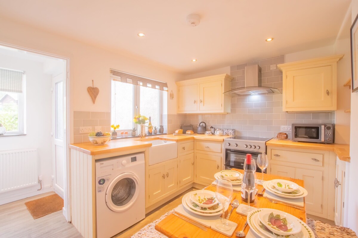 Šis naujai renovuotas būstas yra puikiai įrengtas, sumaniai dera šiuolaikiškas ir kaimiškas. Virtuvė yra erdvi, vedanti į erdvią valgomojo zoną. Pirmame aukšte yra patogi svetainė su malkomis kūrenama ugnimi. Viršuje yra gražiai įrengtas miegamasis su 6 pėdų lova ir lofto lubomis bei 4 dalių prabangiu vonios kambariu su vonios kambariu ir dideliu dušu. Lauke yra pakelta terasa ir papildoma vejos zona, iš kurios atsiveria nuostabūs vaizdai į Dee upę ir kalnus.