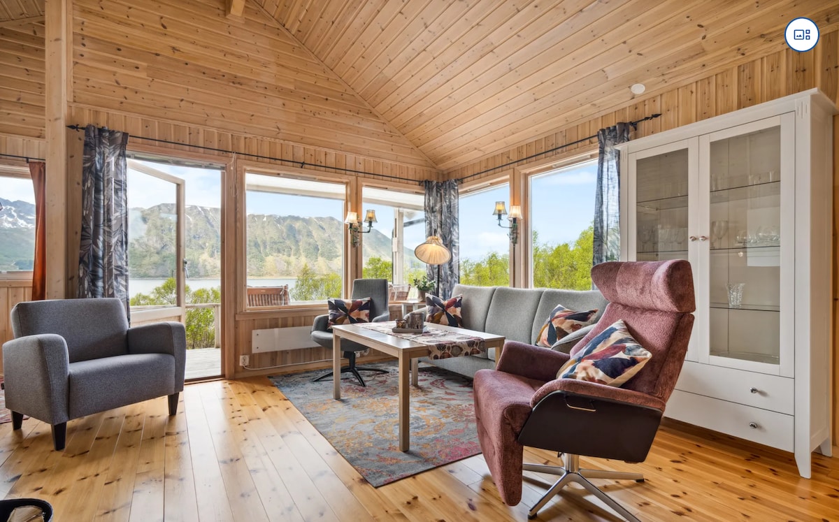 Sandsbu is a beautiful, modern cabin built in 2024. It has high ceilings and large windows in all directions, giving you a full view of the unique surroundings. From the veranda's panorama, you can admire the magnificent mountains in all directions, the mighty ocean and, not least, a constant variation of colorful sunsets and the midnight sun. The cabin is a perfect place to experience the northern lights. We have an 16amp outlet for car charging outside.