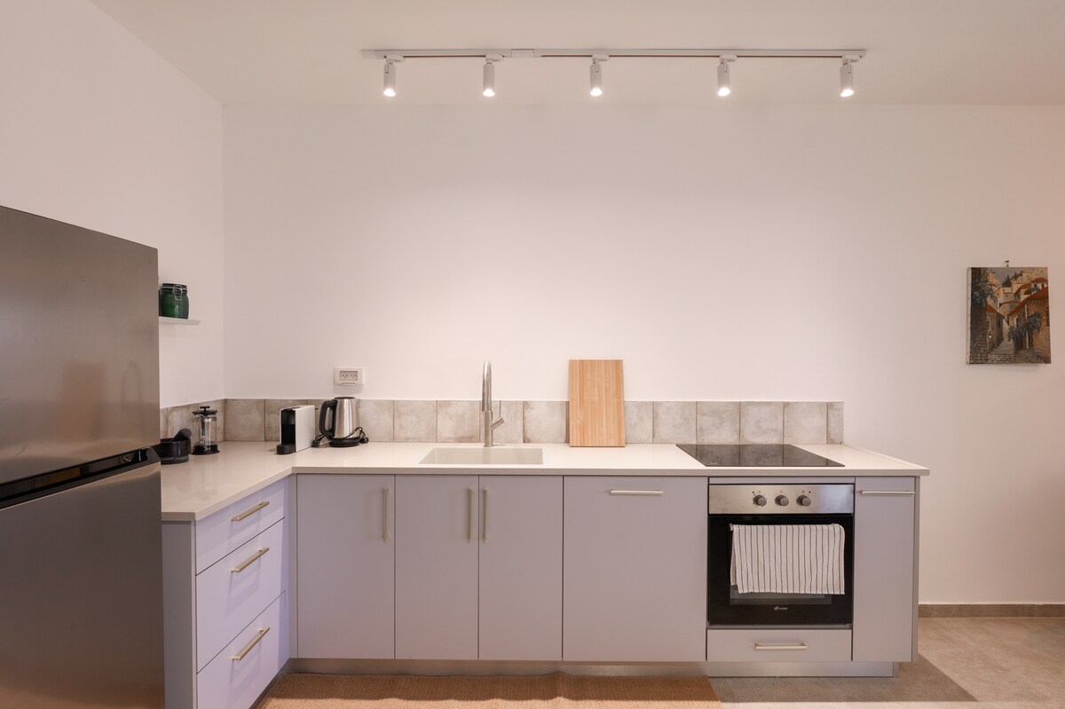 An amazing boutique suite by CASA CARMEL. Newly renovated, romantic and family friendly. Garden and terrace with a breathtaking view of the Carmel Mountains. Fully equipped with everything needed for a perfect stay. Located in an upscale and quiet neighborhood, with so many attractions nearby including hiking trails, cable car, view points, zoo, shopping centers, cafes & restaurants etc. Supermarket & gym at walking distance. Private shelter (MAMAD) available. מכבדים שובר נופש מילואים
