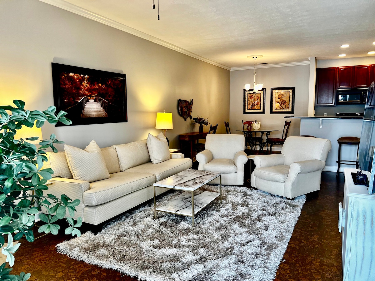 VISIŠKAI NAUJAS 1 lovos/1 vonios butas su karališka lova, kurią galima pasiekti Fishers centre. Kompleksas yra patogioje vietoje, šalia gamtos draustinio, pėsčiųjų tako ir nikelio lėkščių rajono. Mėgaukitės pėsčiomis iki Fishers miesto centro ir paragaukite kavos, ledų, kasdienių ar puikių valgių. Nuostabūs patogumai: baseinas, kubilas, žalia, kepimo zona, prabangus kūno rengybos centras ir klubas. 10 minučių kelio iki Ruoff muzikos centro. KITI DALYKAI, į KURIUOS reikia ATKREIPTI DĖMESĮ: būstas atsuktas į baseiną ir kartais turi triukšmą. BASEINAS IR SŪKURINĖ VONIA YRA SEZONINIAI