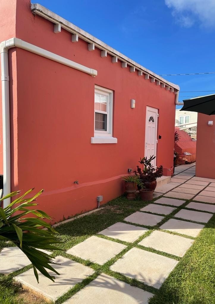 Šiame bute yra pilnai įrengta ir jame yra „karalienės“ dydžio lova + „sulankstoma“ lovelė + oro lovelė, tinkama papildomam asmeniui. Už 2/3 mylių nuo oro uosto. Turi atskirą verandą sodo aplinkoje. Netoliese yra Krištolo olos, „Blue Hole“ parkas, „Swizzle Inn“, „Grotto Bay“ viešbutis, geležinkelio /pėsčiųjų takas, ledų baras, dviračių parduotuvė, netoliese esanti parduotuvė ir keli vaizdingi autobusų maršrutai į Hamiltono miestą ir populiarius paplūdimius.