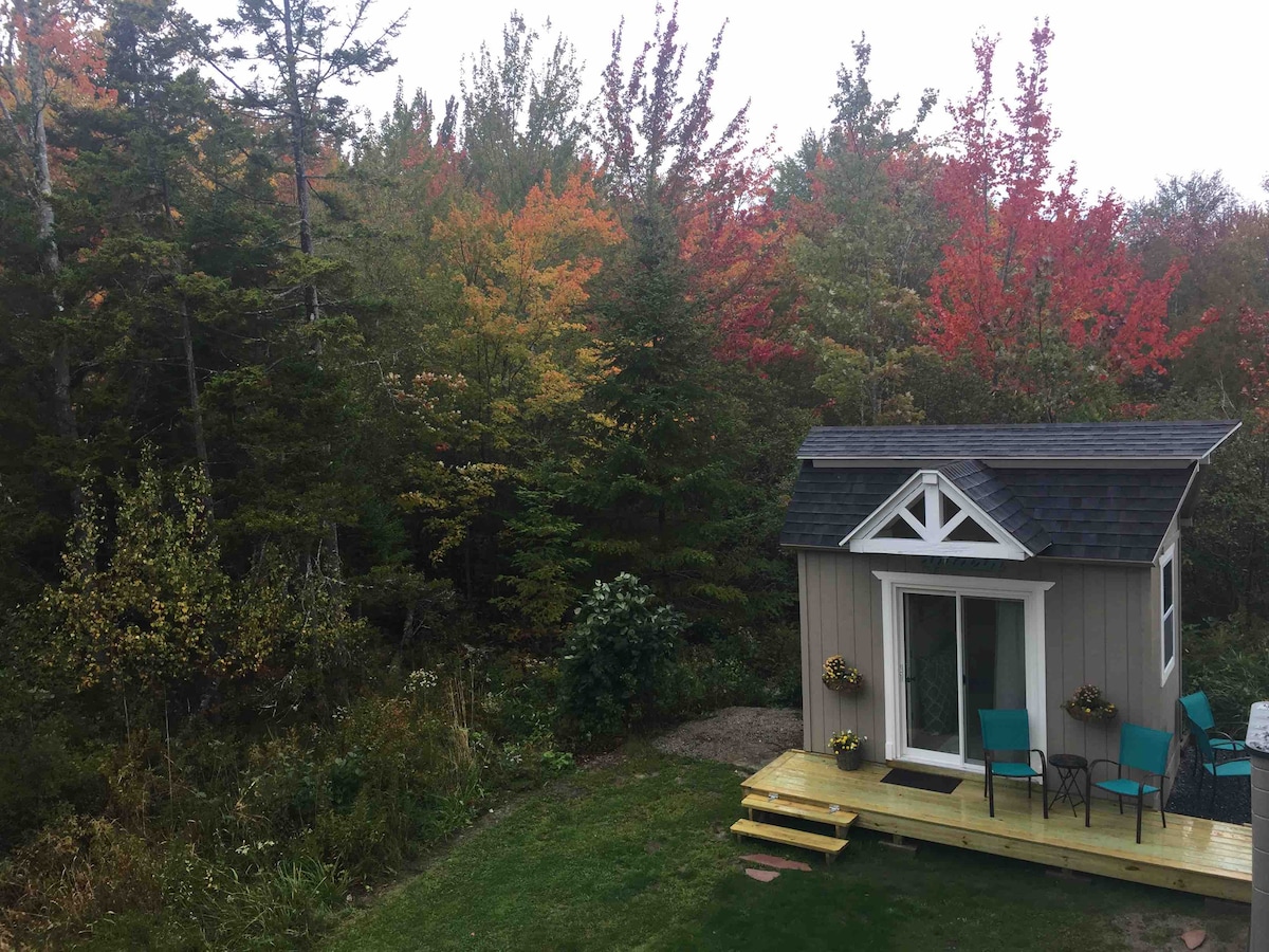 Mūsų šeima džiaugiasi galėdama pasidalyti su jumis mūsų mikronamu! Įsikūręs mūsų menininkų kolektyviniame ūkyje, tai yra mūsų mėgstamiausia vieta žemėje. Jis yra už tinklelio, kotedžo šerdies ir turi gražią ir kvepiančią kedro pirtį. Esame už 27 minučių kelio nuo Akadijos nacionalinio parko ir apsupti išties nuostabių vietinių paplūdimių. Siūlome labai patogias lovas, lauko dušą, mirksinčias šviesas, vasaros naktis, pripildytas židinių, ryškius klevus rudenį ir jaukias žiemos filmų naktis lovoje, pvz., valtyje.