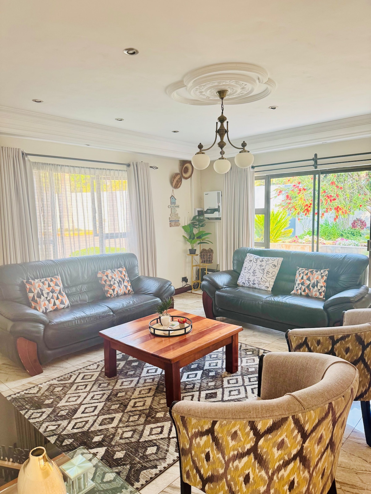 Luxury Retreat in Borrowdale 🌟 Įsikūręs išskirtinėje uždaroje bendruomenėje, šis elegantiškas 4BR, 3,5BA namas siūlo privatų baseiną, saulės energiją (visą parą veikiančią elektrą), didelės spartos belaidį internetą ir pilną DSTV. Mėgaukitės pilnai įrengta virtuve su indaplove, lauko terasa ir saugia, rami aplinka. Su gręžiniu vandeniu, aukščiausio lygio saugumu ir vos už kelių minučių kelio nuo Sam Levy Village ir Borrowdale Brooke - tai puiki prabangos ir komforto viešnagė. Užsisakykite dabar, kad potyris būtų nepamirštamas! ✨