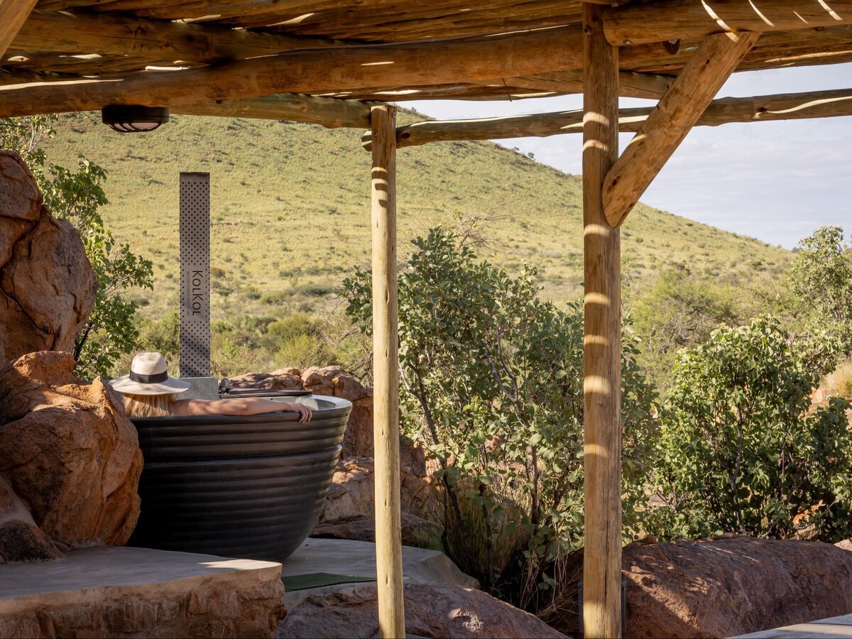 At the foot of the Ocre coloured Naos Mountain, lies a place of serene and tranquil beauty. Our Out Of Africa Farm House and Farm welcomes you to this stylish, family friendly Farm. Situated on 14 000ha of savannah grassland interspersed with large Camelthorn trees you will have the most amazing adventures, relax on the veranda, go for walks and enjoy a Sundowner while the sun paints the Mountain red. Base Price of N$3500 for up to 4 guests all Incl, N$500.00 supplement per guest if > 4 guests