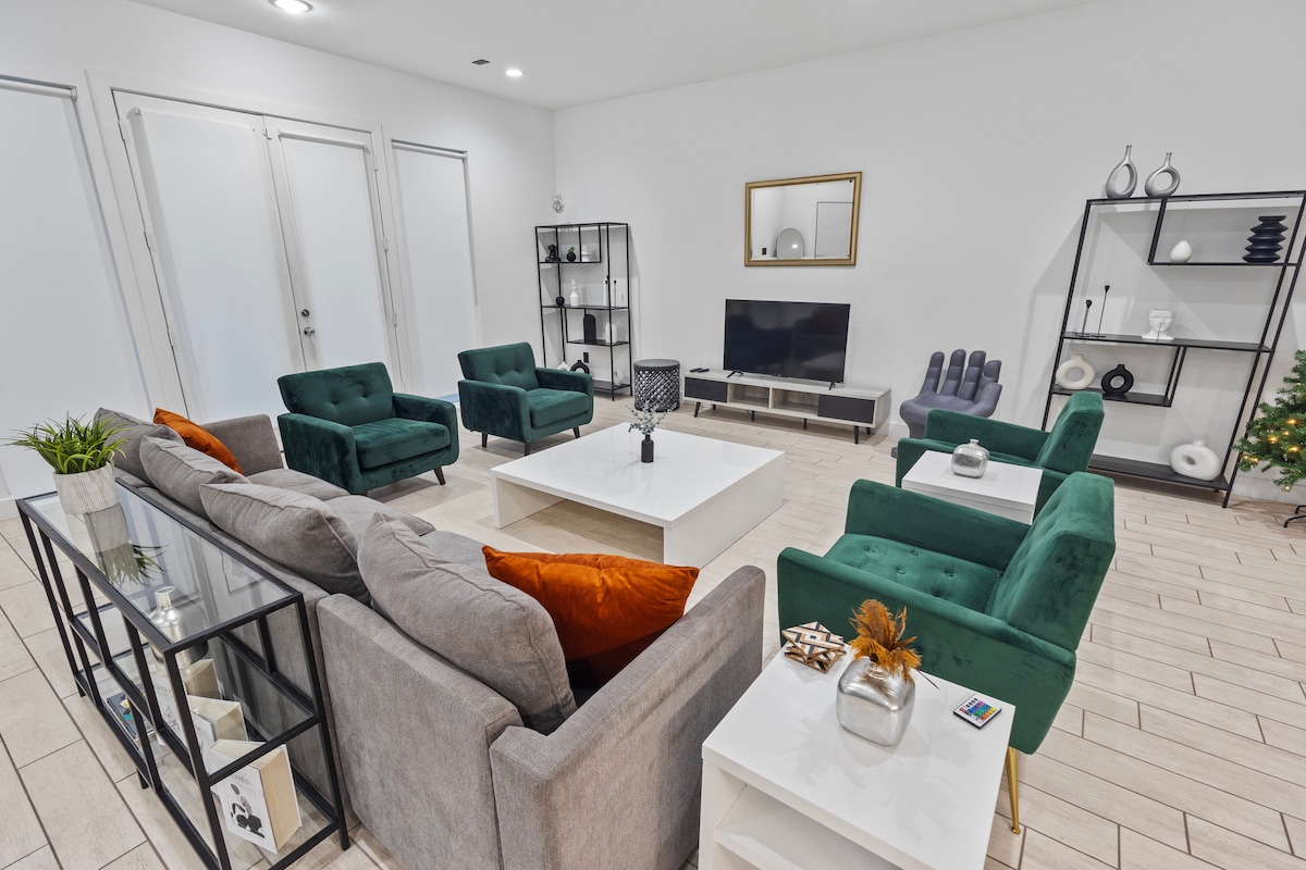 Welcome to The Prolific Stay, your luxury escape in Houston. - Thoughtfully designed 3BR retreat - Vibrant décor and spa-like bathrooms - Spacious living areas and private office nook - Fully stocked kitchen and two-car garage - Smart TVs and fast Wi-Fi - Perfect for business travel, family trips, or extended stays - This designer 3BR townhome offers bold style, calming accents, and upscale amenities that cater to relaxation and productivity.