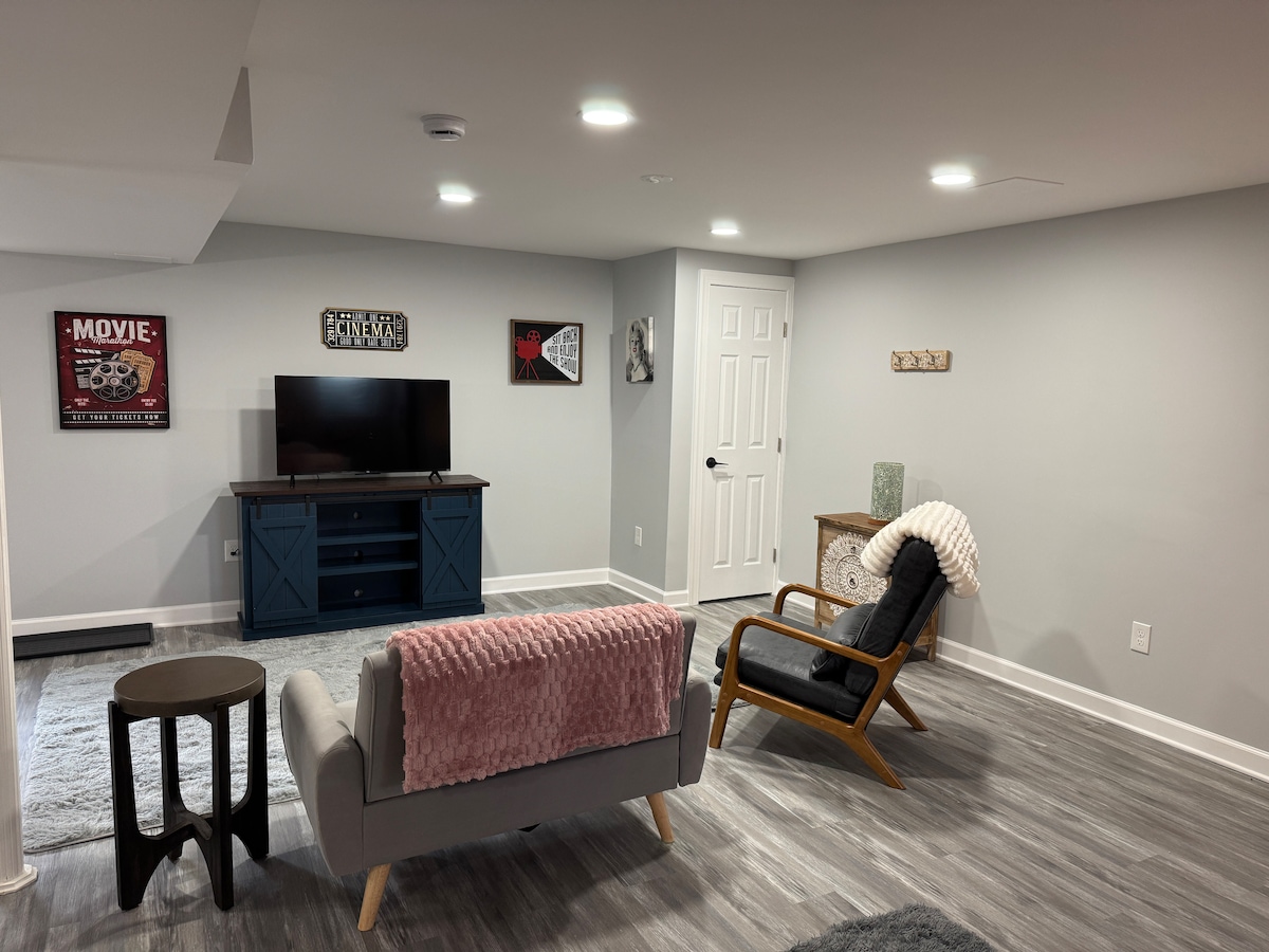 Tai erdvus žemesnis naujai pastatyto namo lygis. Šioje privačioje svečių erdvėje yra poilsio erdvė, valgomasis ir virtuvėlė, taip pat miegamieji ir vonios kambarys. Svečiai dalijasi tik pagrindiniu įėjimo į miesto namą su viršuje gyvenančiais savininkais. Šioje privačioje dekoruotoje erdvėje yra išmanusis televizorius, patogios sėdimosios vietos, valgomasis 4 asmenims, mikrobangų krosnelė, kavos aparatas, pilnas šaldytuvas, skrudintuvas/oro gruzdintuvas, dvigulė lova, drabužių spinta ir komoda. Skalbyklė/džiovyklė galima užsisakyti. Peržiūrėkite namų taisykles prieš užsakydami