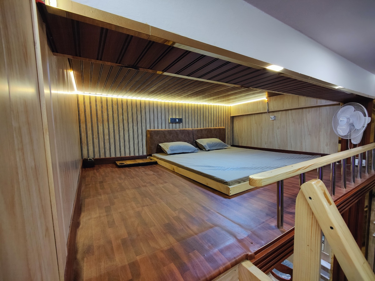 Šiame patogiame oro kondicionieriaus kambaryje, esančiame Rajinder Nagar, netoli Karol Bagh, yra erdvi lova, prijungtas vonios kambarys (visą parą veikiantis karštas vanduo), virtuvėlė (indukcinė viryklė) ir darbo vietos stalas (spartus Wi-Fi). Jis turi neprilygstamą vietos pranašumą, vos už kelių minučių kelio pėsčiomis nuo Shankar Rd, netoli geriausių ligoninių, tokių kaip Gangaram, BLK, puikiai tinka dirbantiems/keliaujantiems/pacientams ir globėjams. Prie įėjimo taip pat yra vėsus poilsio kambarys, kuriame galite atsipalaiduoti. Rami, žalia aplinka. Greita prieiga prie parduotuvių, restoranų ir sveikatos priežiūros paslaugų.