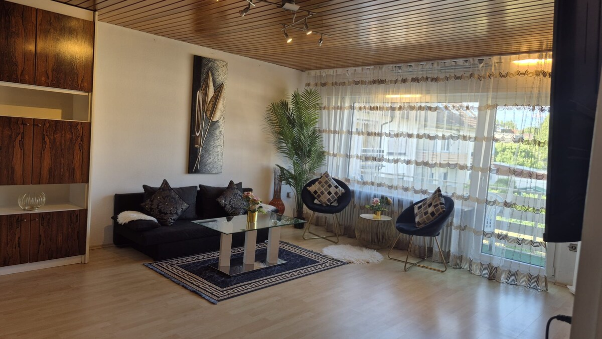 Modernus ir gražus butas ramioje, bet centrinėje vietoje. * 2 miegamieji * 2 lovos (140 x x 200 cm) * Balkonas su valgomojo stalu ir 4 vietomis * 2 erdvios darbo vietos * lengvai pasiekiama traukinių stotis (pigus susisiekimas su Frankfurtu, Wiesbaden, Mainz) * Greitas Wi-Fi (atsisiuntimo greitis iki Mbps/Mbps) * Labai gerai įrengta virtuvė * Skalbyklė ir džiovyklė gali būti naudojamos nemokamai Jei turite klausimų ar problemų, bet kuriuo metu svečiai.