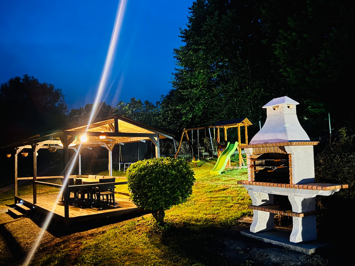 Rural Cottage made of Stone and slate roof, original from the area with unparalleled location and views, it has a private oak and chestnut´s forest with its own picnic table and an extensive farm to walk in an incomparable environment, 2 floors, 3 rooms one of them with sofa and tv, Barbecue - Outdoor fireplace, Water well, covered porch, Terrace - balcony, Viewpoint - stone terrace suspended on the hillside with stunning views of the valley and the mountains, as well as the whole house.
