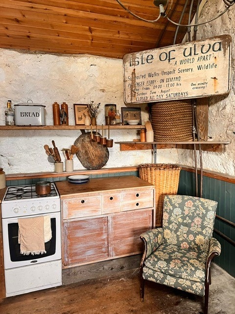LABAI PAPRASTAS, NUTOLĘS, GRAŽUS, BET NE PRABANGUS idiliškoje situacijoje - atviri akmeniniai ir mediena. Atsineškite savo patalynę ir viryklę. Pateikiami pagrindiniai puodai, indai, stalo įrankiai ir kt. Bendras lauko tualetas, vidaus vonia šildoma kietojo kuro virykle. Mediena gali būti nupirkta už 13 svarų sterlingų už kibirą, o jei norite, ji bus palikta naudoti. Tinka baidarėms, patyrusiems kalvoms ir salų krepšininkams. Daugiau atsiliepimų rasite atsiliepimuose. Nėra Ulva kelto Št., o sekmadienį - tik birželio, liepos ir rugpjūčio mėnesiais.