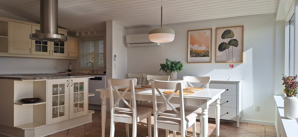 Hyggeligt sommerhus med havkig•Brændeovn•Plads til 8 Leder du efter et lyst,roligt og hyggeligt fristed tæt på havet? Her kan I tage det roligt,tænde op i pejsen og nyde de enkle øjeblikke sammen. Start f.eks. dagen med morgenmad på terrassen med udsigt til vandet,og slut dagen af foran pejsen-perfekt til afslappede aftener med et glas vin,selskabsspil eller bare for at nyde roen. Sommerhuset er smukt indrettet i nordisk stil og veludstyret med alt, hvad du har brug for til et dejligt ophold.