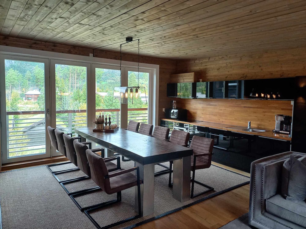 Naujas elegantiškas butas ant kalvos. Netoli visko: slidinėjimo trasos, restoranai, slidinėjimo įrangos nuoma. Įsikūręs Hemsedal slidinėjimo centre, Fjellandsbyen B401 (4 aukštų). Saulėtas apsaugotas balkonas su vaizdu į kalvą. Garažas su liftu į butą, slidinėjimas įeinant ir išeinant, liftas šalia buto, 2 slidinėjimo kambariai su šildymu batus ir šalmus. Bute yra viskas, ko jums reikia, įskaitant internetą. Bendros erdvės: skalbimo mašina, vaikų kambarys, žaidimų kambarys, stogo terasa ir moderni sporto salė tame pačiame pastate. Mokama automobilių stovėjimo aikštelė su įkrovikliu rūsyje.