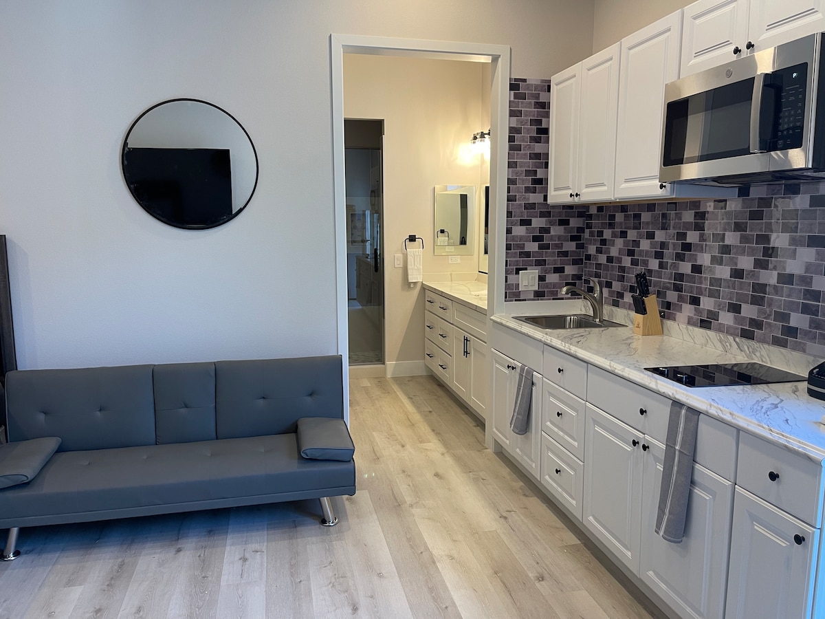 Graži ir renovuota studija . Nepriklausoma prieiga, ramus rajonas, netoli Hwy 95. Jame yra visi patogumai ne namuose. Išmanusis televizorius, skalbyklė ir džiovyklė, lyginimo lenta ir lygintuvas. Netflix ir kitos srautinio perdavimo programėlės. Virtuvė su viskuo, kas reikalinga maloniai viešnagei, ir kavos virimo aparatas Plaukų džiovintuvas. Jame yra erdvė darbui,parkas Nemokamai ! Tiesiog važiuojant automobiliu, jame taip pat yra filtruoto vandens! Be ypatingos ramybės poilsiui