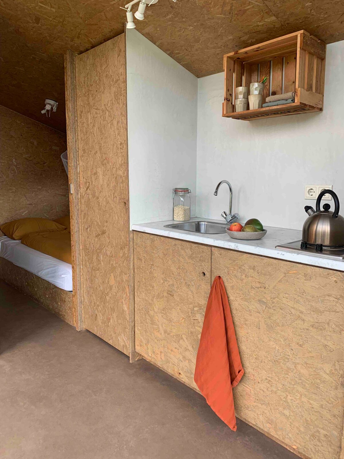 Nyderlandų viršuje, netoli Vadeno pakrantės, rasite šį tvarų ir energiją neutralų mikronamą. Namelis yra mūsų nuosavybės gale ir yra apsuptas natūralaus sodo. Iš jo atsiveria platus vaizdas ir užtikrinamas privatumas. Mažas namelis dekoruotas meile ir detalėmis. Jis yra visiškai pagamintas iš medienos ir yra 30 m² ploto. Kotedže yra visi patogumai, viskas, ko reikia. Mėgaukitės kraštovaizdžiu ir dangumi, ramybe ir erdve!