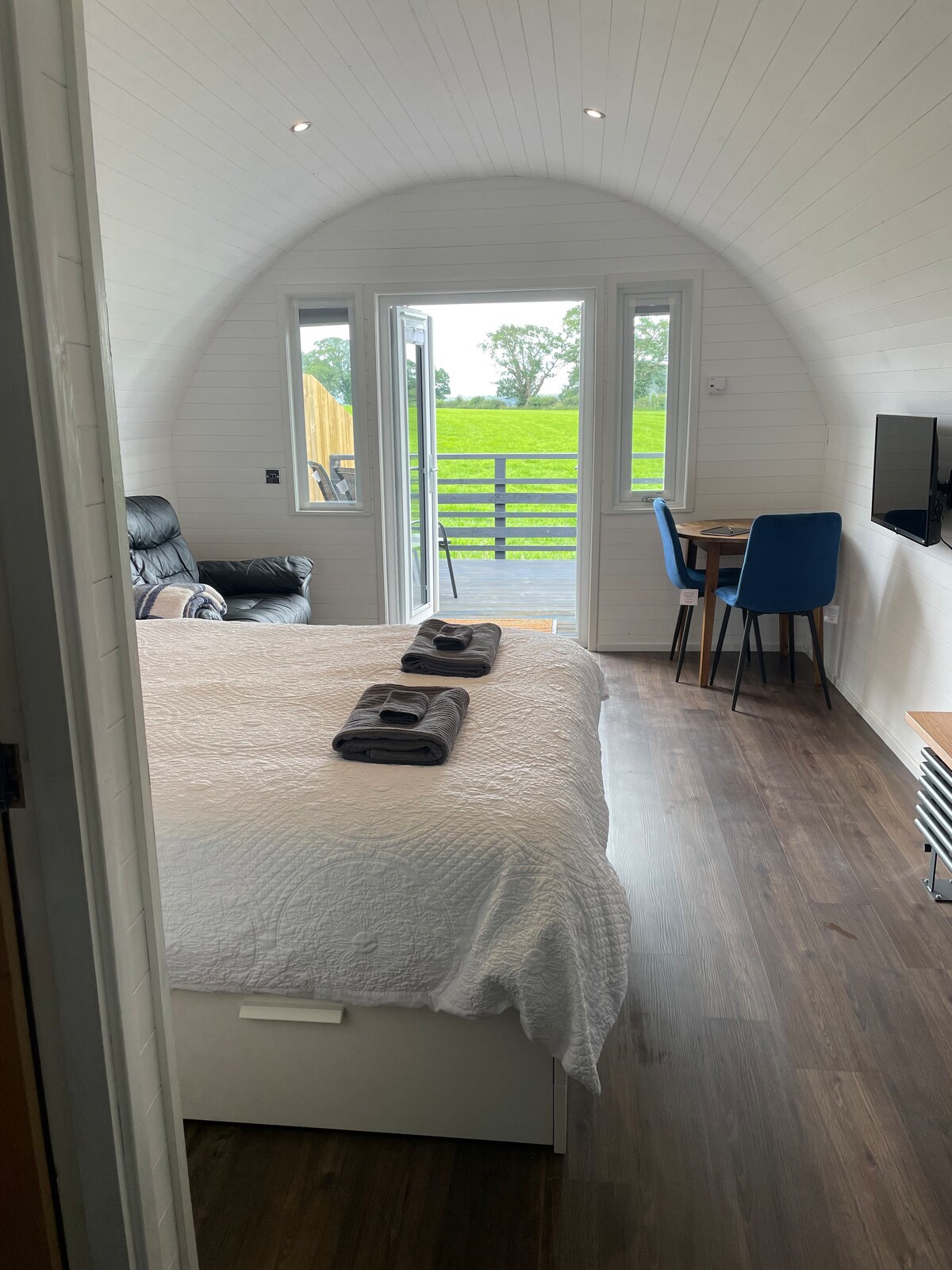Pow Maughan Studio apartment at Mews Wheelbarrow has a single entrance and is a completely self contained studio within the building with high levels of security, external CCTV. The studio has a King Size bed with super comfy mattress and two high quality single Z beds. The apartment has its own shower/toilet/sink and the specification is of an exceptional standard. The studio is Smart lock accessible guests do not require keys. Super fast 80/20 speed WiFi