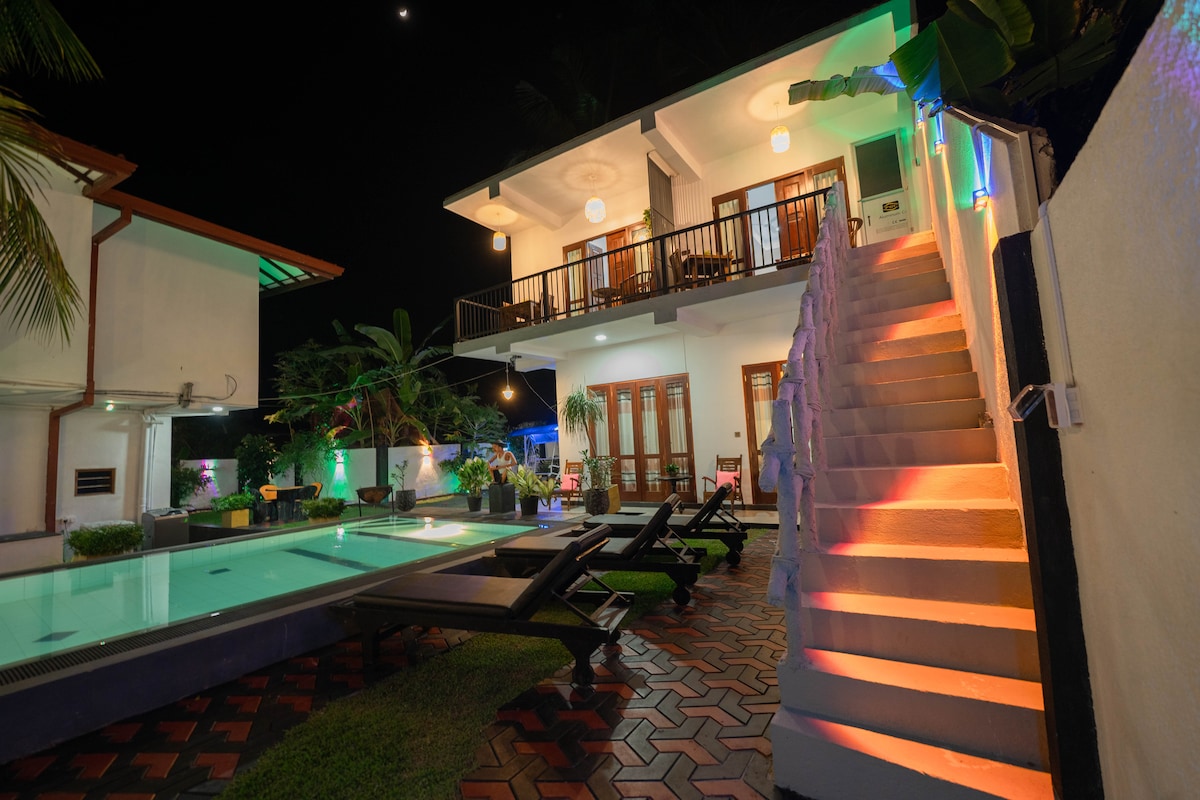 Jauki privati 2 miegamųjų vila vos už 300 m (5 min. pėsčiomis) nuo Ahangamos slaptosios paplūdimio. Yra pagrindinis kambarys (karališko dydžio lova), dviejų lovų kambarys, pilnai įrengta virtuvė, palėpė ir darbo vieta. Erdvus vonios kambarys ir aukšta tvora aptvertas privatus baseinas užtikrina visišką privatumą. Kasdien tvarkoma, bet namų tvarkytojas vilos teritorijoje nebūna, todėl svečiai gali mėgautis visišku privatumu. Įskaičiuoti nemokami pusryčiai. Puikiai tinka poroms, šeimoms ar draugams, ieškantiems visiškai privačios vietos paplūdimyje.